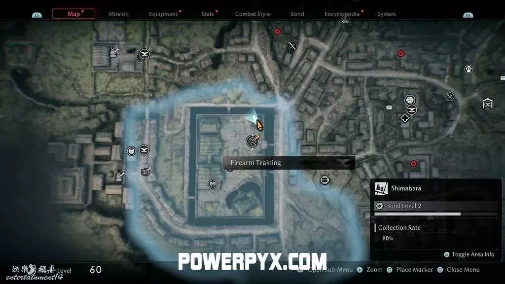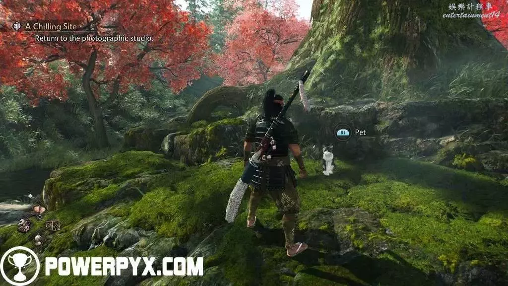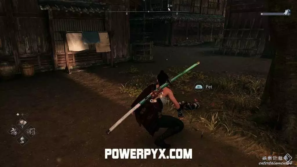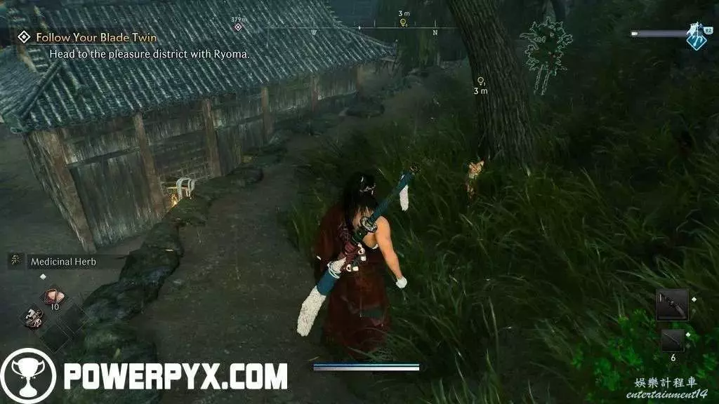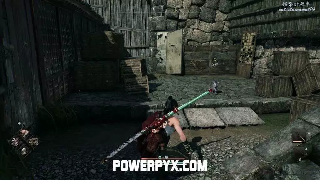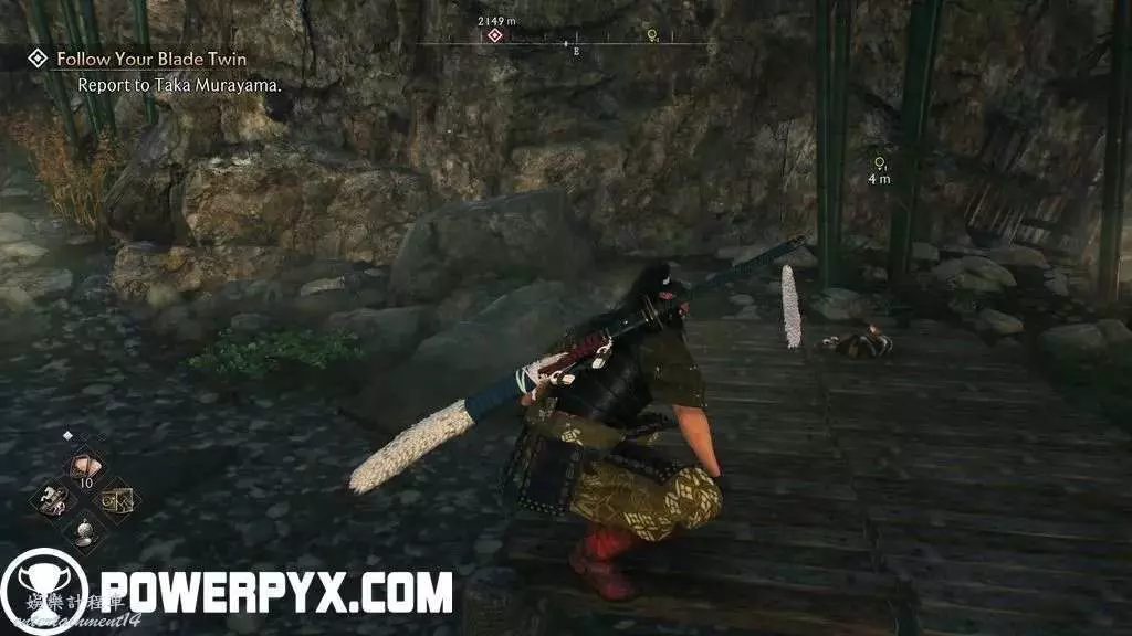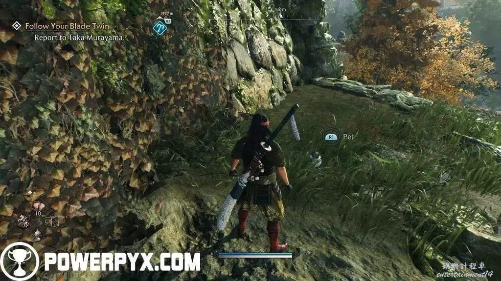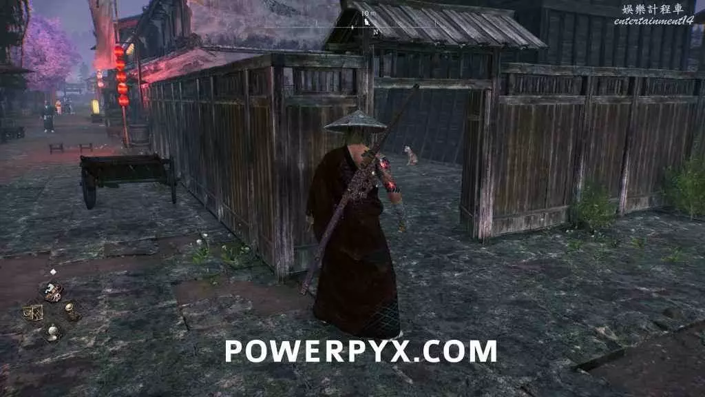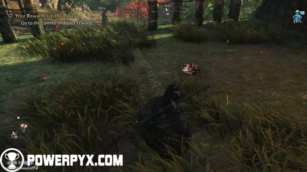 位於神社後面的樹上,利用鉤繩先爬上樹。