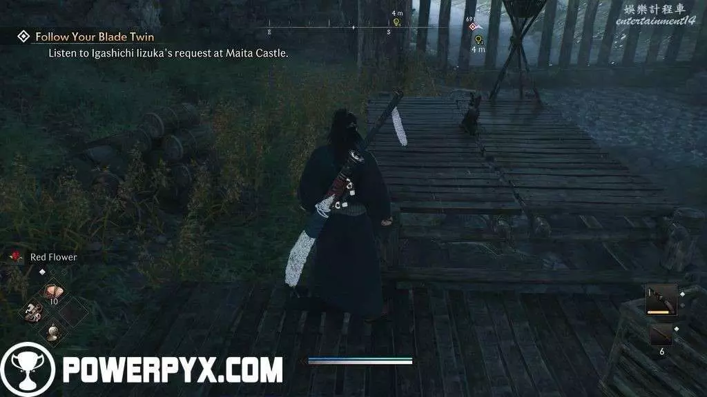 位於房子後面的花池旁邊,可以從隱刀旗所在位置往東走。