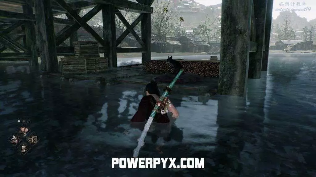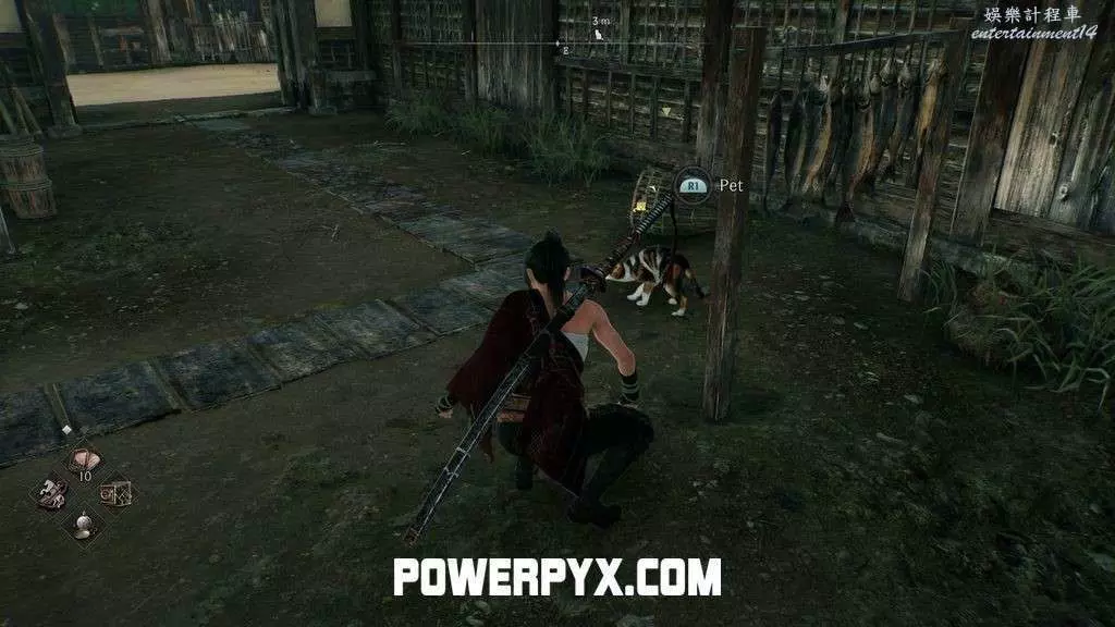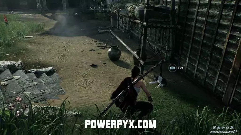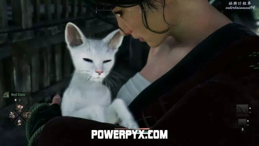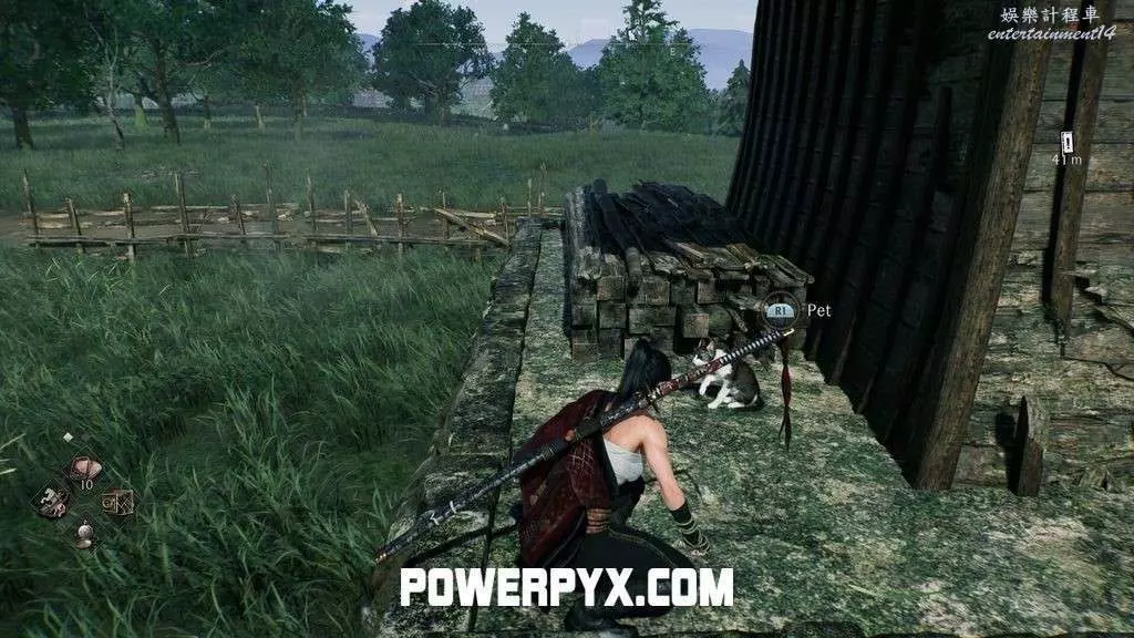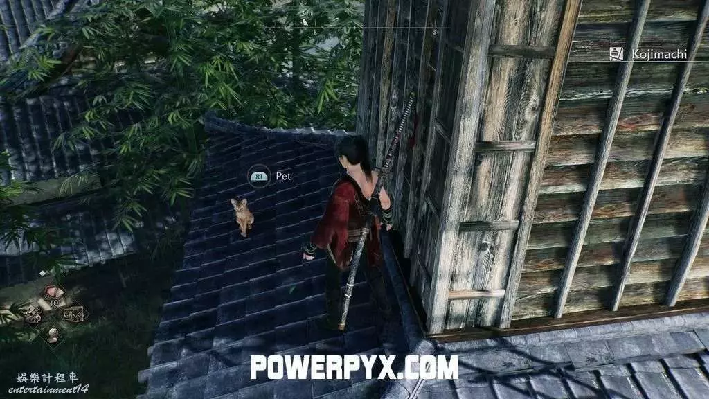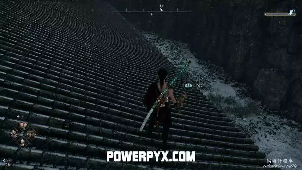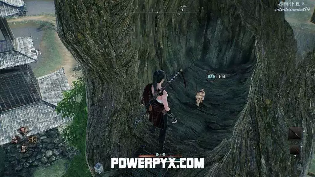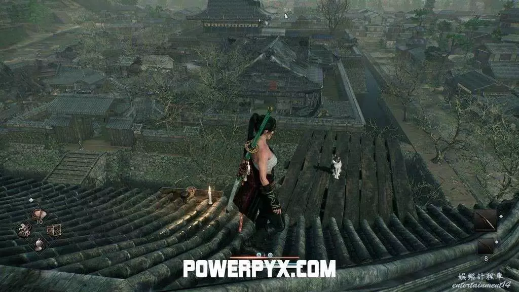 在建築頂上,可以通過掛在建築後方的繩索到達貓貓所在位置。