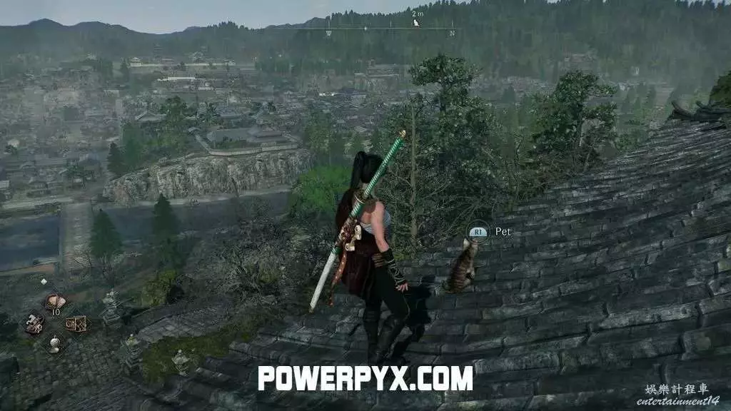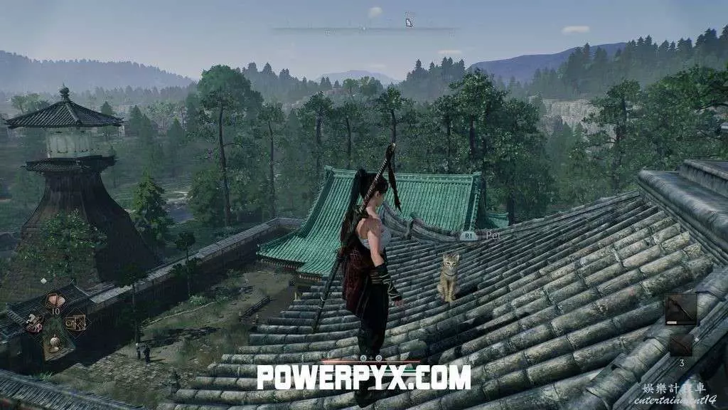 在塔上,建議從對面的塔飛到貓貓所在位置。