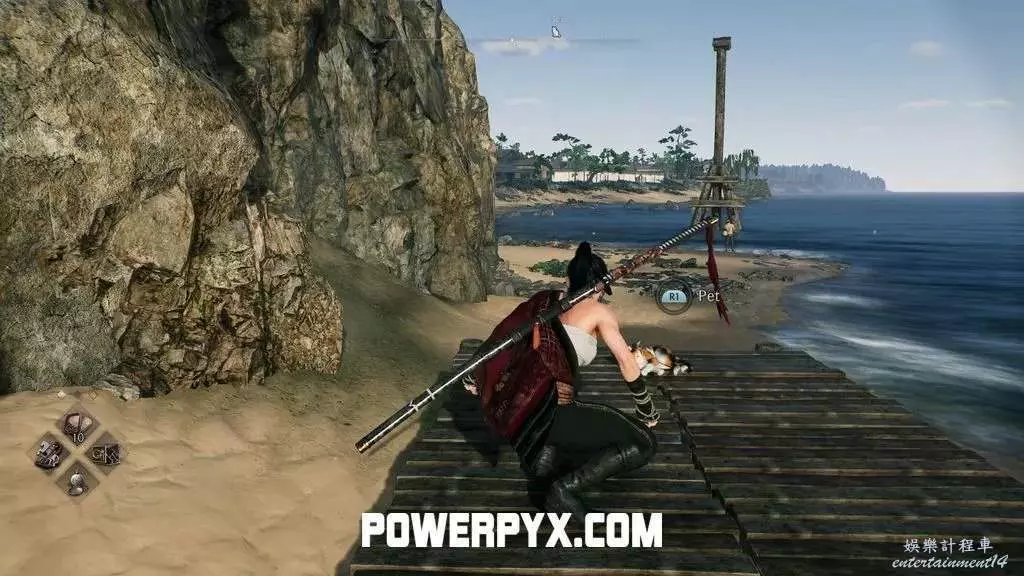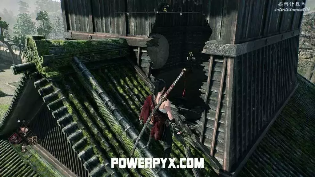 位於瞭望塔定,利用附近建築的屋頂靠近。
