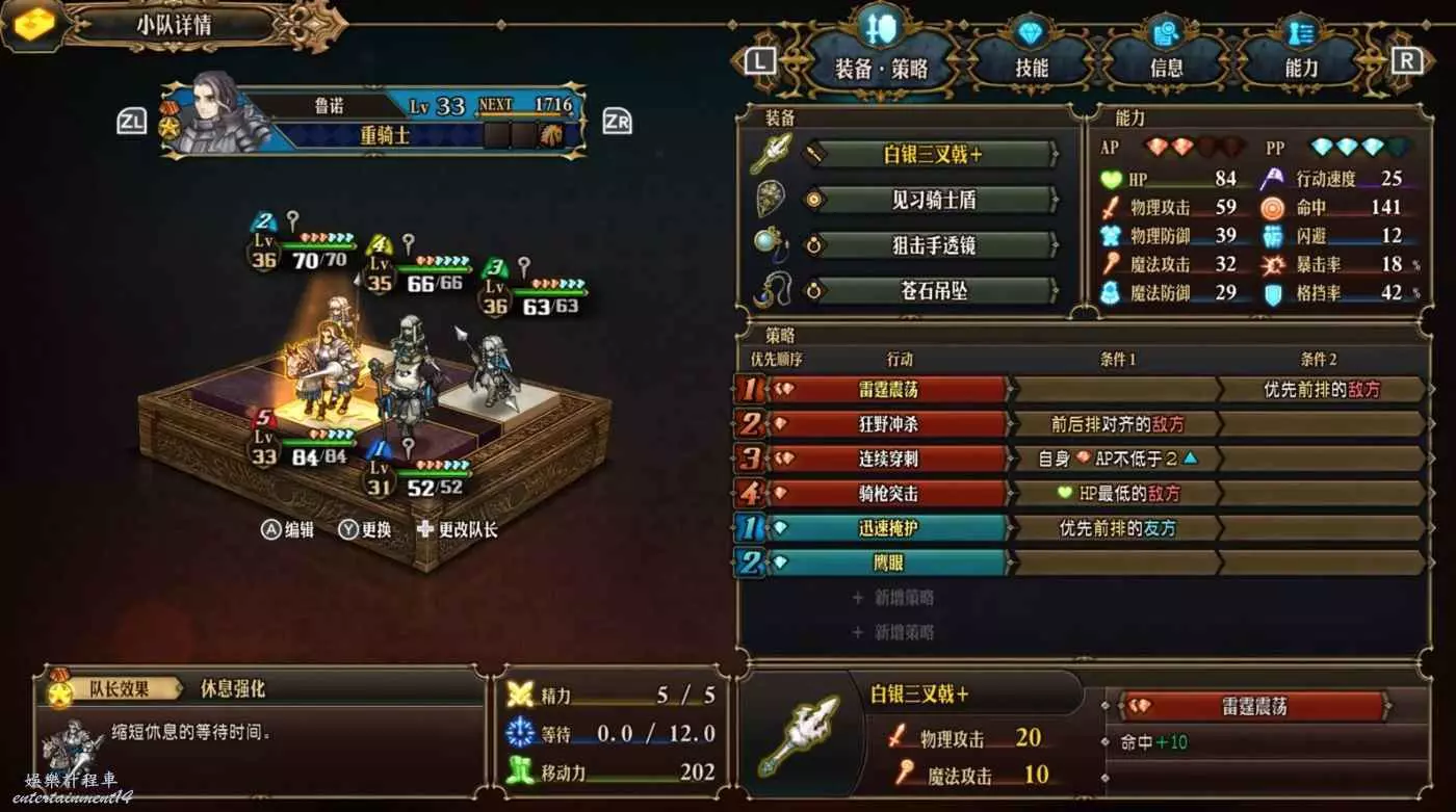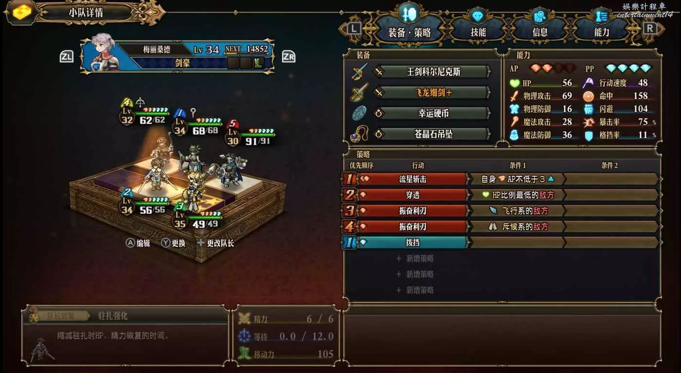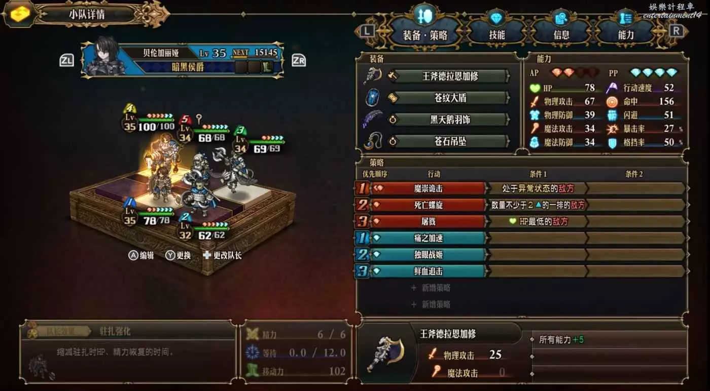 二王子被動起手全隊+20速,獅鷲用巨人大斧的技能(沉重猛擊)暈人最多的一排,二王子必中給到前排,三個騎士沖起來把其他人都暈了,剩下的框框揍就行了。對了二王子要帶個大急救箱保證續航。