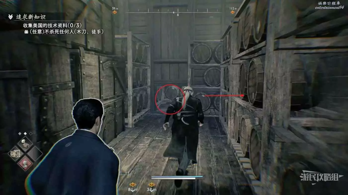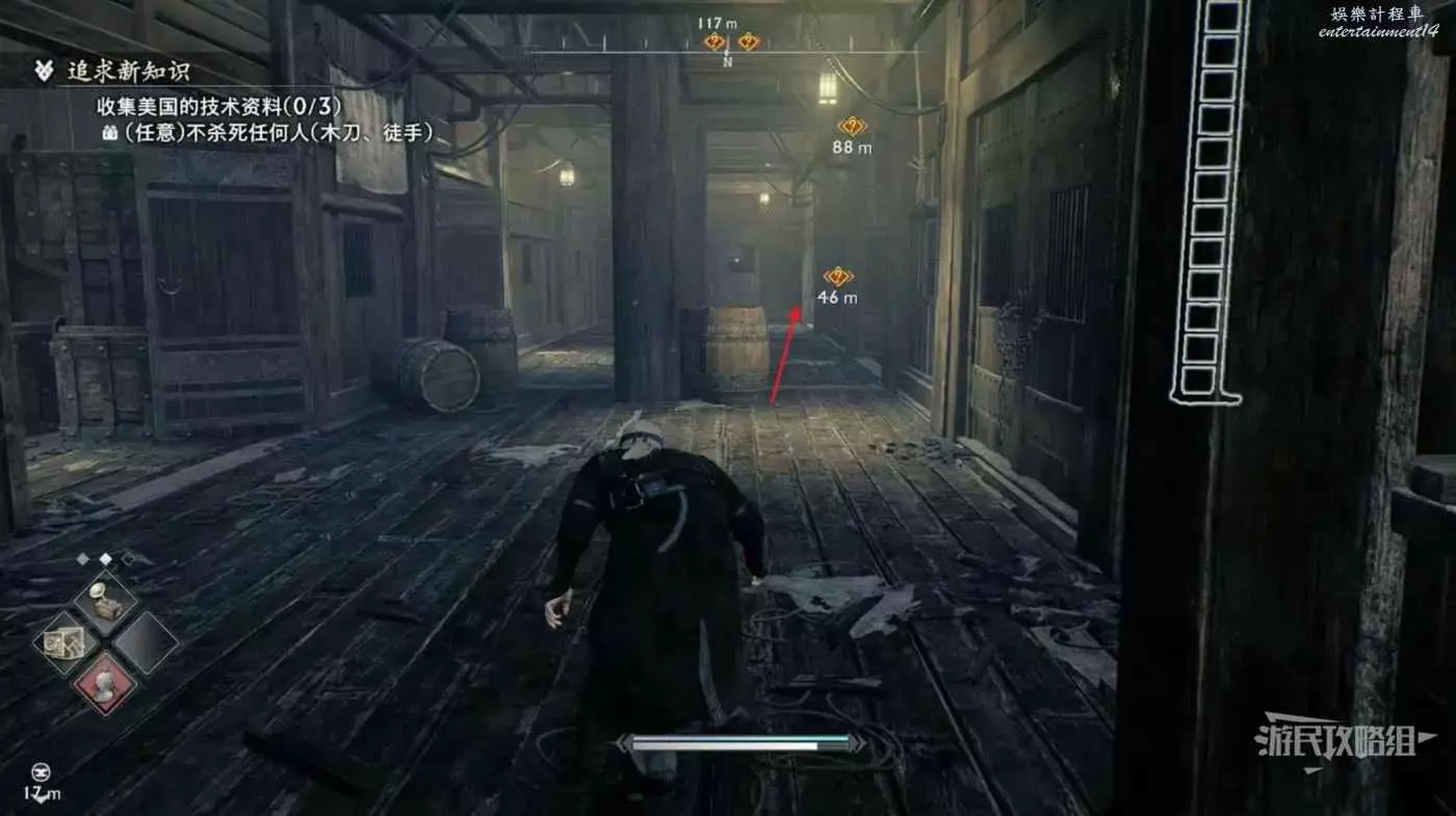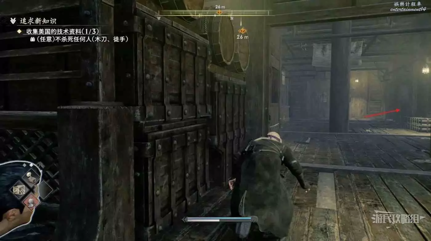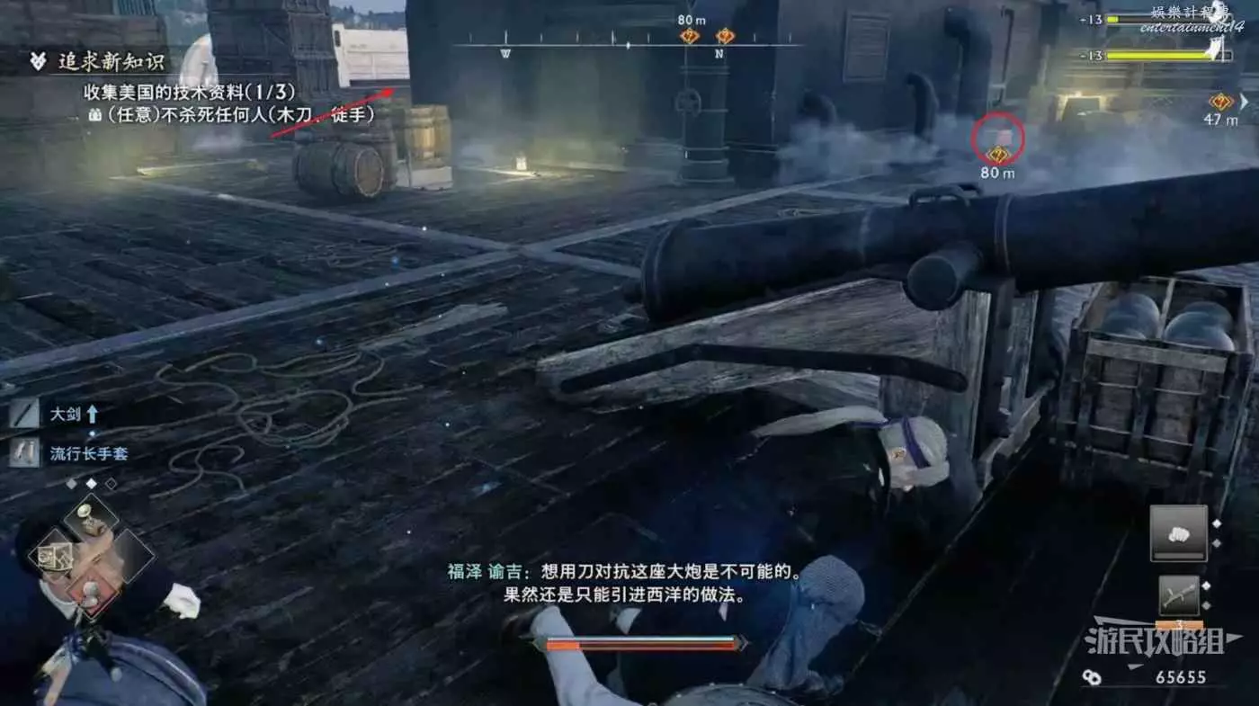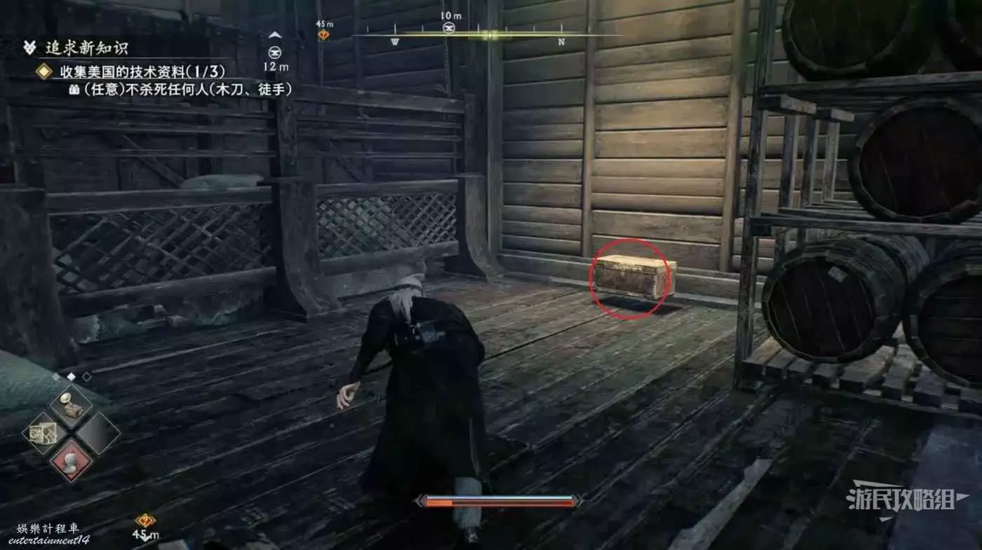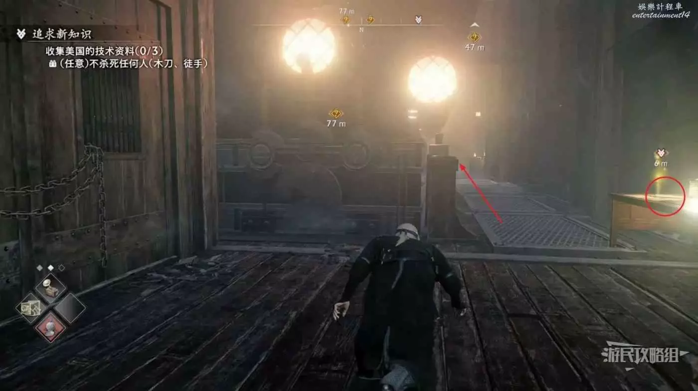 來到甲板先往左看,暗殺掉左側的看海士兵並往左走。