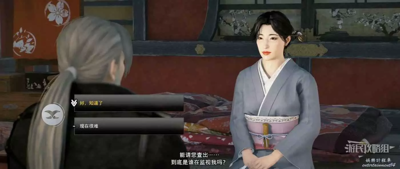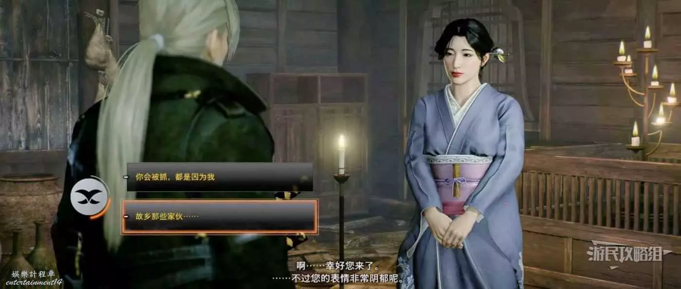 在外面等待一會,進入游郭找多加談話可以看到井伊直弼也來了多加的房間。