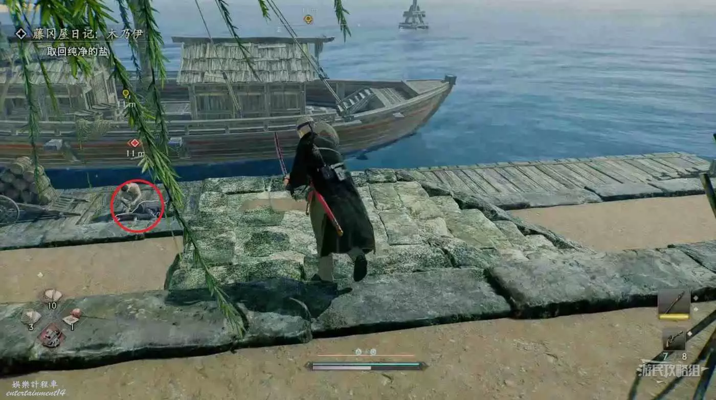 浪人崛起 (Rise of the Ronin) 藤岡屋日記木乃伊支線任務攻略 24 3 月 2024-03-24 廣告 作者:Wioud 來源:遊民星空 任務接取地點: 來到此處與NPC對話,他表示一位住在附近的藥草學家想要變成木乃伊,所以想讓我們收集材料。 新鮮柿子 前往下圖所示位置。 擊敗周圍的敵人,拯救被圍困的商人。 戰鬥結束與商人對話,可以在他這裡購買5個柿子。 純淨的鹽 詳細位置: 來到此處發現一個盜賊正在搜刮屍體,將盜賊幹掉拾取屍體上的鹽,回到接任務的NPC那裡。 發現委託任務的人被幾個惡徒纏上了,將他們全部幹掉與NPC對話即可完成任務。