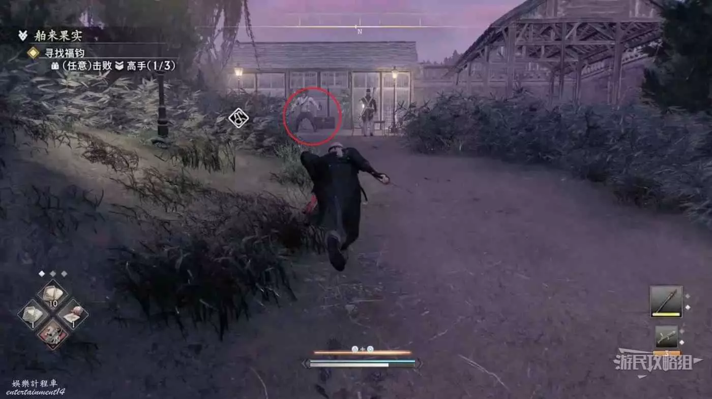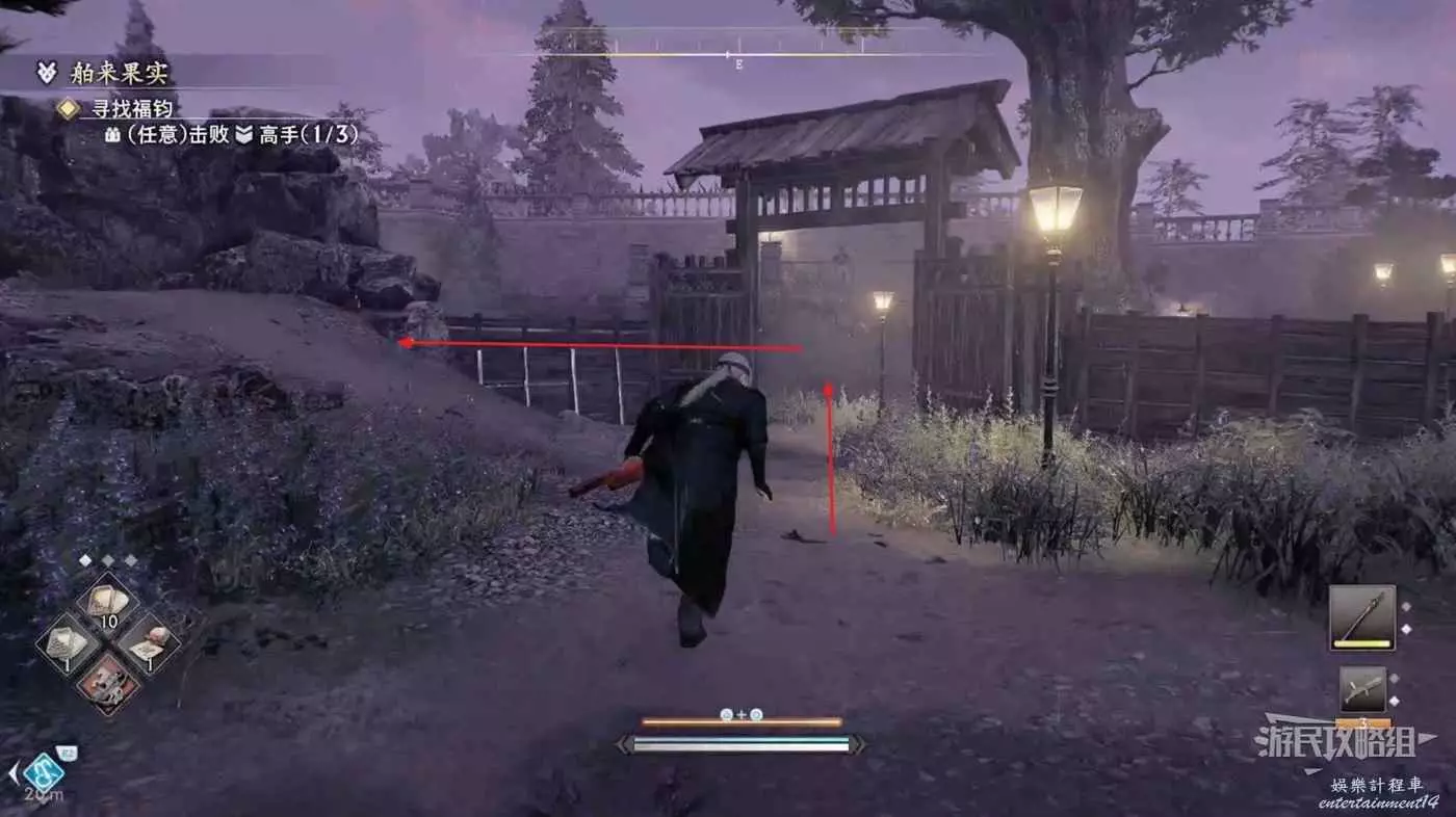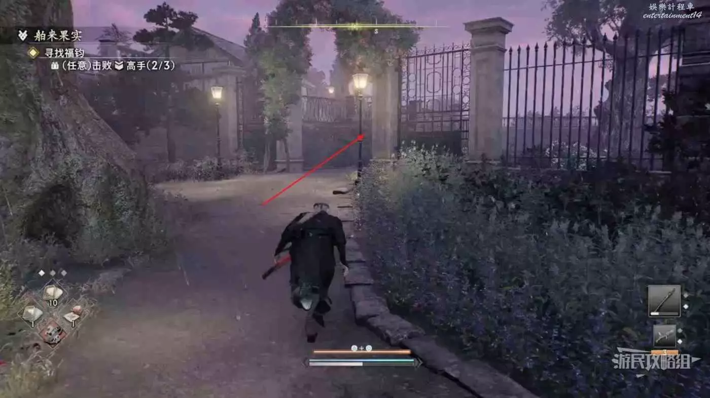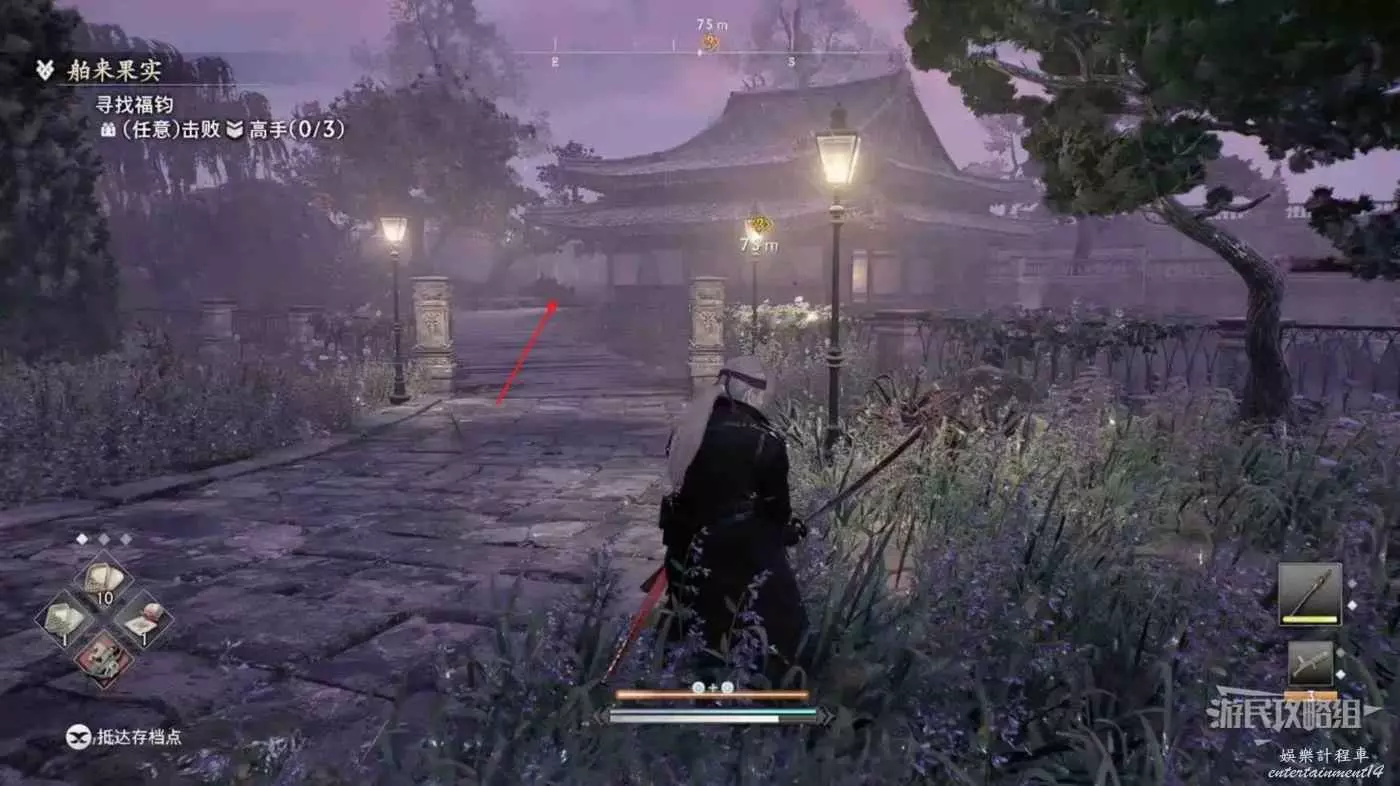 幹掉此處最後一個高手,通過左上的鉤爪點進入BOSS戰區域。