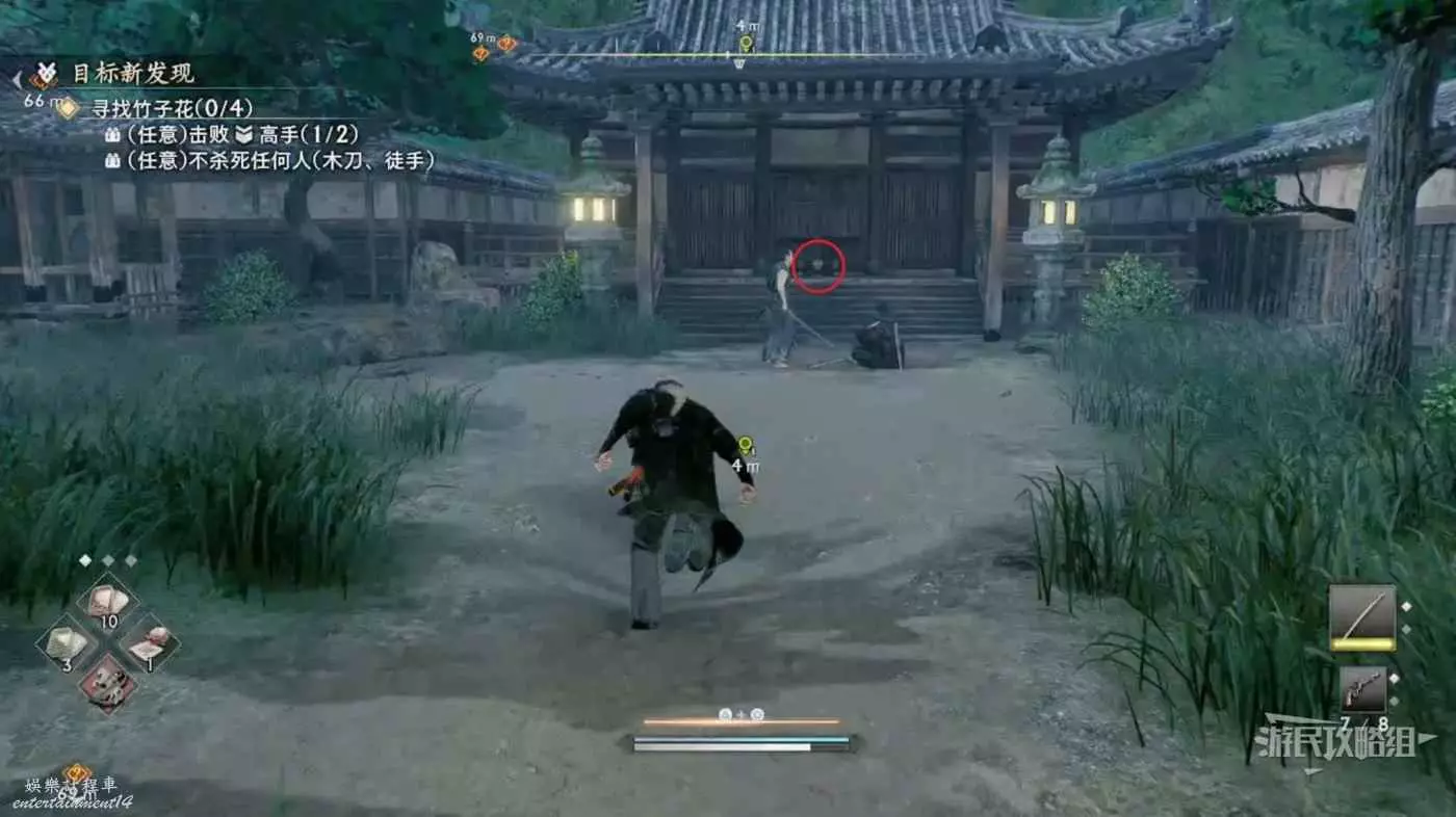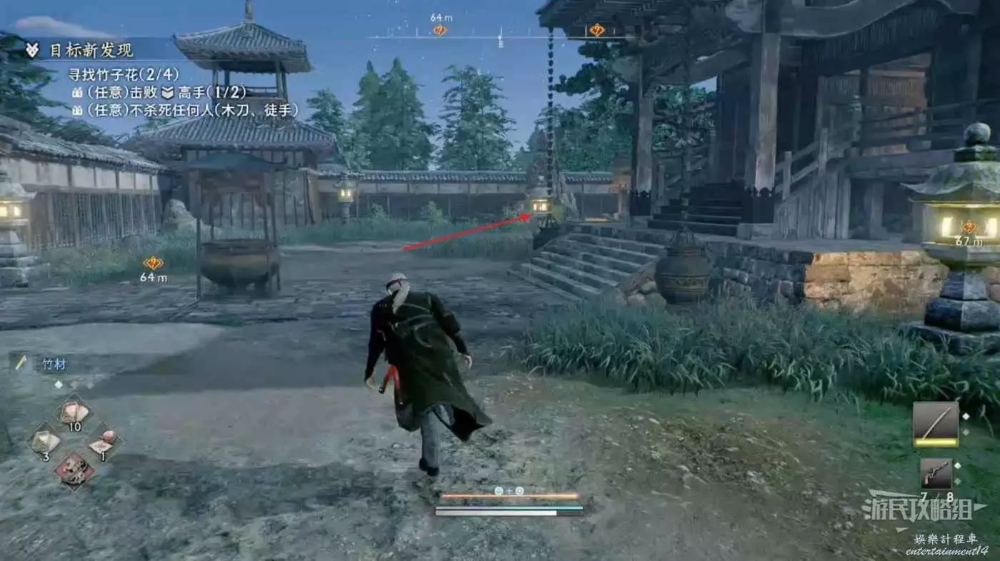 來到目標位置的寺廟,要注意此次任務需要使用拳頭或木刀。