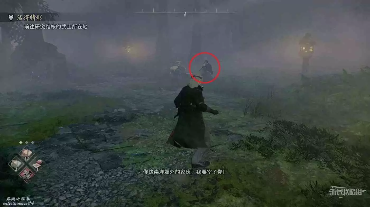 來到山中間發現NPC正在與幾個浪人交戰,不出意外製作新藥的人就是他了。