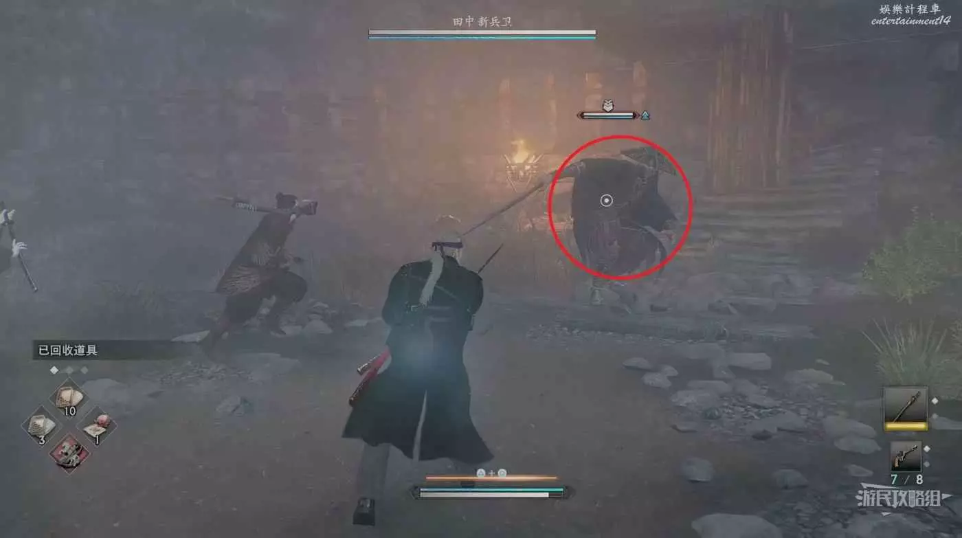 來到山中小屋的門前發現BOSS就在這裡等著我們,注意他很喜歡使用腿踢我們,使用石火彈反的手感不是很好,需要把握節奏。