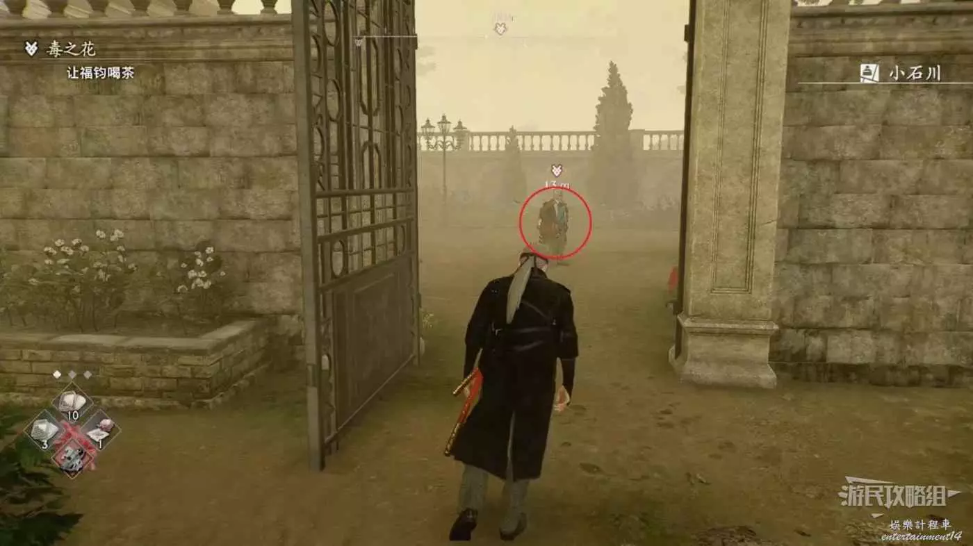 對話結束會被立刻傳送到NPC的身邊,與NPC對話讓他也喝下帶有毒藥的茶。