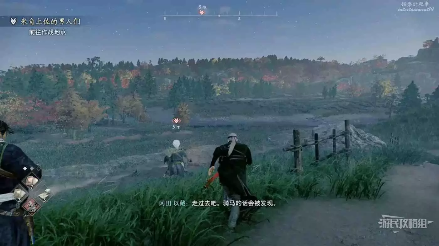 浪人崛起 (Rise of the Ronin) 來自土佐的男人們支線任務攻略 24 3 月 2024-03-24 廣告 作者:Wioud 來源:遊民星空 支線-來自土佐的男人們 任務接取地點: 來到目標位置與龍馬對話, 從對話中得知這倆人是想要親手幹掉一個惡徒,所以打算趁夜色在惡徒回旅店的時候埋伏一手。 接下任務,跟隨倆人一塊步行前面目標地點。 推薦埋伏位置: 在此處等候目標走過來,利用滑行裝備飛到目標上方直接原地暗殺掉。 隨後將隨行的敵人全部解決掉即可完成此任務。