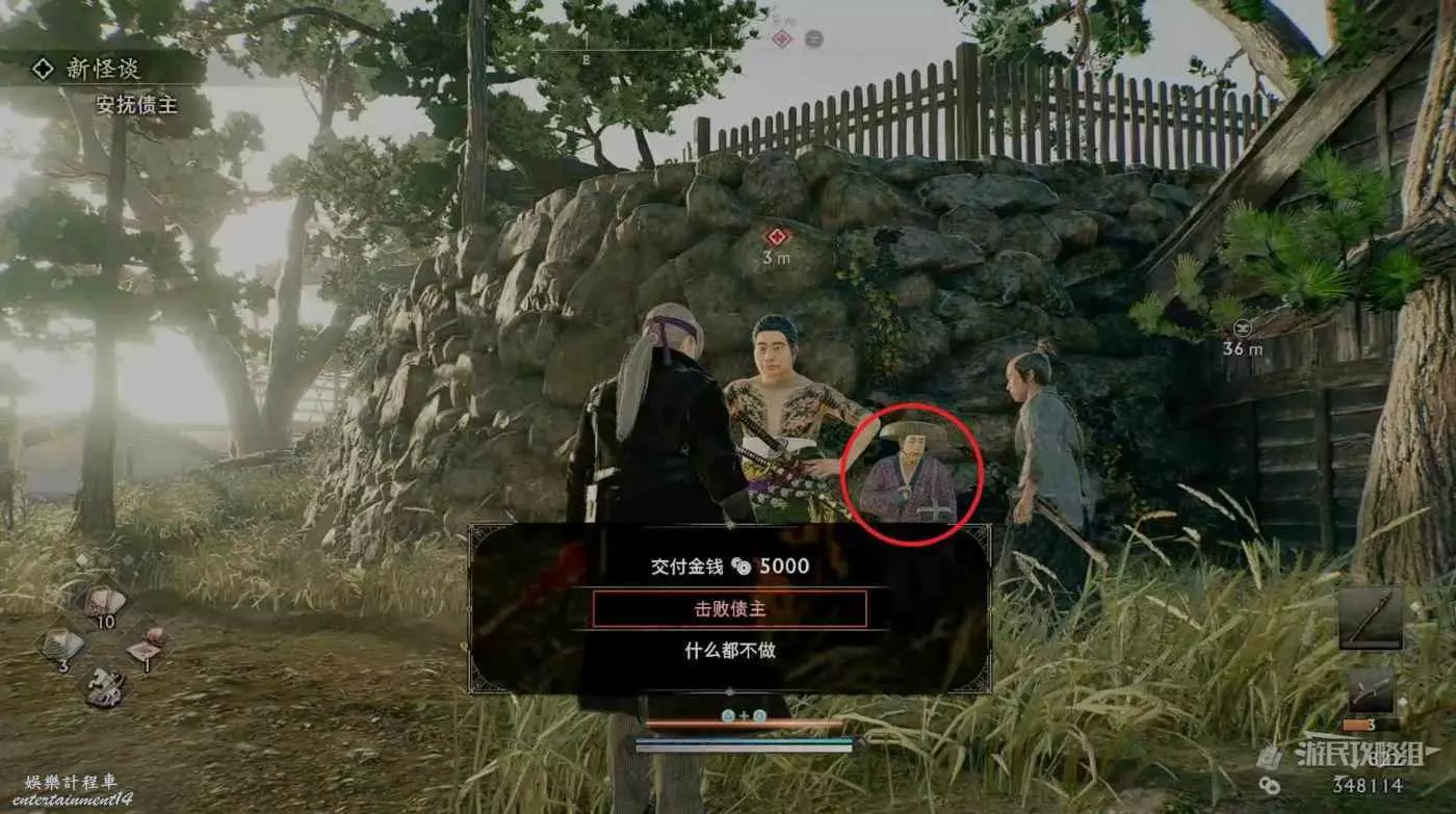 來到畫師位置發現畫師欠了債主五千塊沒發還債,這裡直接選擇擊敗債主,戰鬥勝利後畫師會將畫交給我們。
