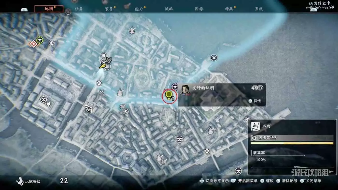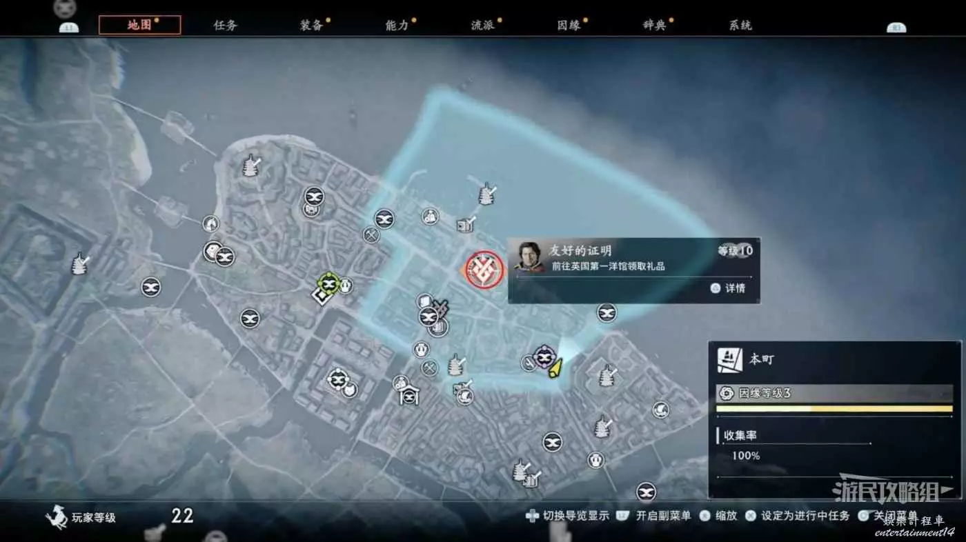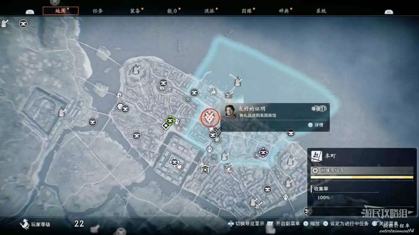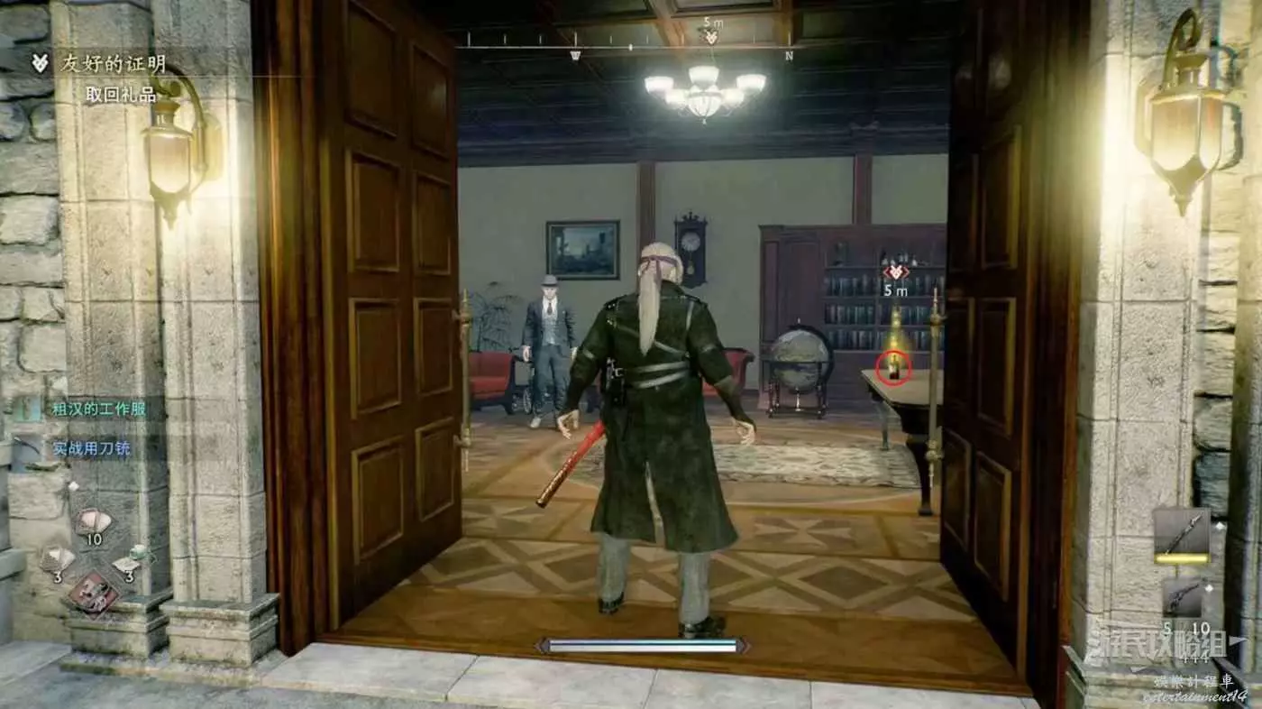 浪人崛起 (Rise of the Ronin) 友好的證明支線任務攻略 24 3 月 2024-03-24 廣告 作者:Wioud 來源:遊民星空 支線-友好的證明 任務接取地點:在橫濱貴賓館找NPC接取任務。 對話中得知NPC想讓你阻止一群攘夷武士來讓交易順利進行。 首先需要前往下圖所示的英國第一洋館。 到達洋館發現有一群巡邏的武士,將其全部幹掉進入洋館建築。 拾取右邊桌子上的酒,將酒送到附近的英國商館。 英國商館位置: 來到商館門口發現有一個敵人在等待我們,將其幹掉後進入劇情,此任務完成。