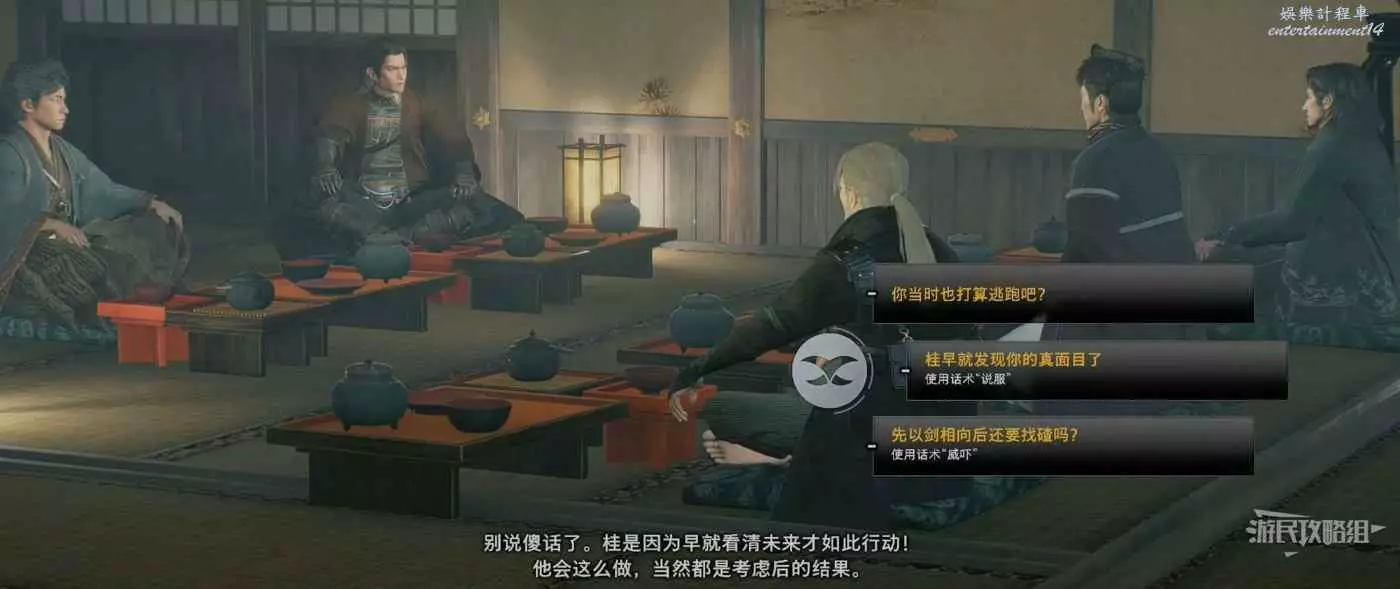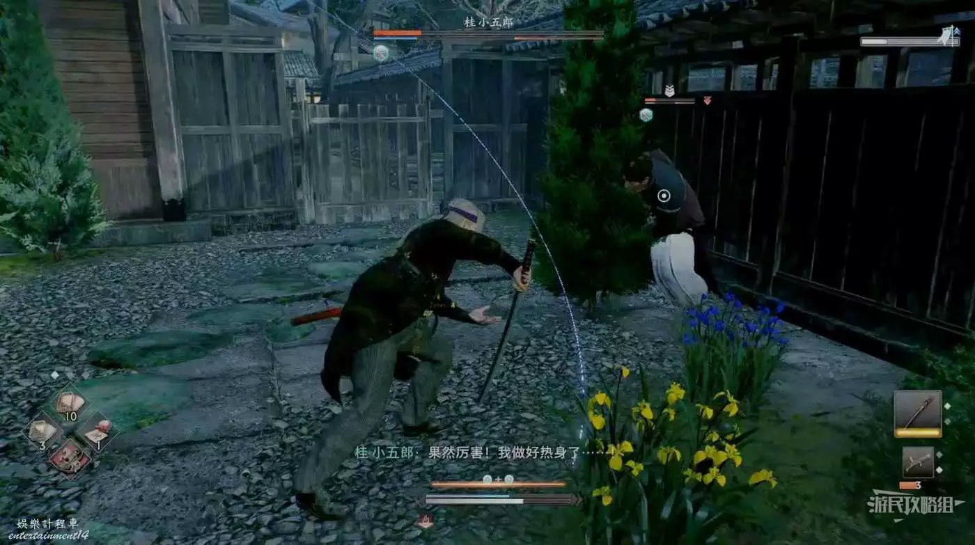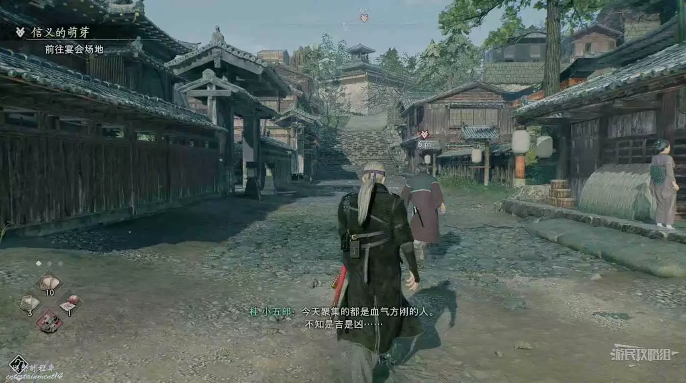 浪人崛起 (Rise of the Ronin) 信義的萌芽支線任務攻略 24 3 月 2024-03-24 廣告 作者:Wioud 來源:遊民星空 任務接取位置: 來到此處與桂對話,他表示想和我們一起參加薩摩的宴席。 對話結束會直接傳送到任務區域,這裡只能慢慢跟著桂走進宴席。 宴席開始後薩摩與長洲兩方劍拔弩張,跟桂單挑過的人與NPC繃不住了,開始拿拳頭說話。 這裡要用拳頭將薩摩的3個人全部打敗,桂看完我們的戰鬥表示想跟我們再打一場。 來到後院與桂對戰,桂的戰鬥方式與遊戲剛開始時在游郭一樣,再次將其擊敗即可完成任務。