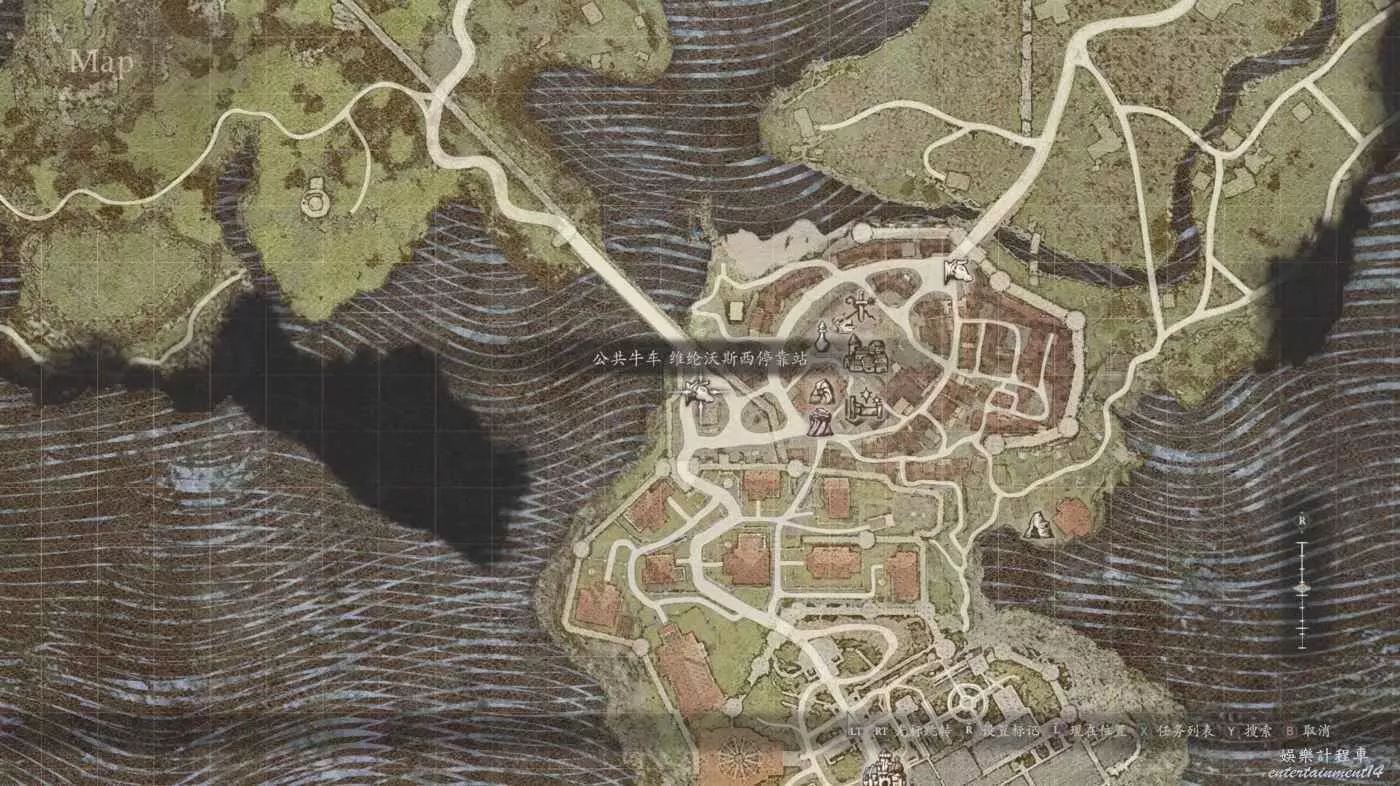 6.與布魯諾交談得知修女長在夜晚的平民區廣場有密會行為,不急著去密會現場,先去旅店村找流浪醫生鑒定藥物成分,旅店村坐西邊的牛車(圖9)即可抵達。