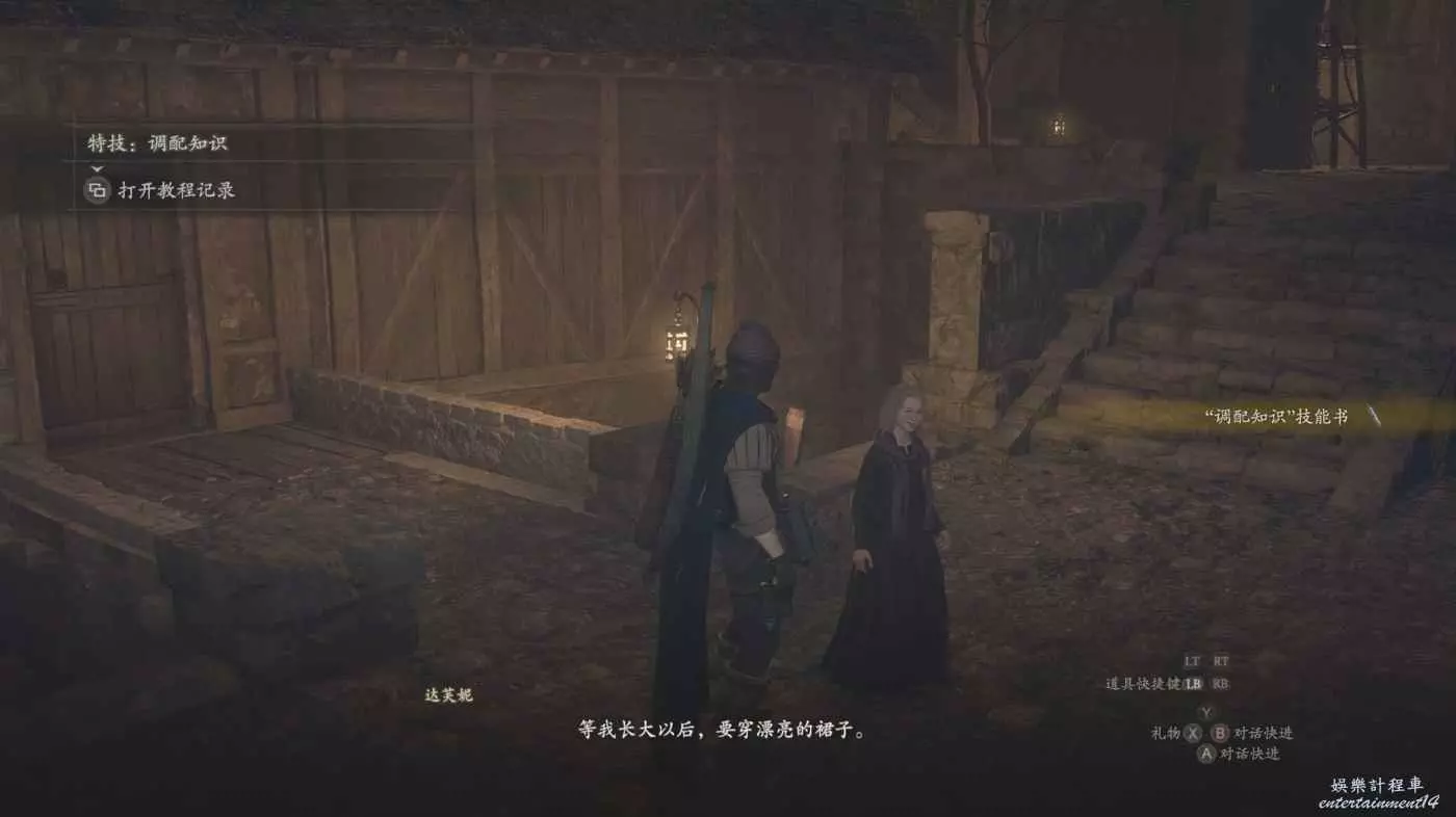 後面再來救贖之家可以觸發後續劇情,與救贖之家的肯德里克和戴安娜對話,再找達芙妮對話即可獲得隨從的調配知識技能書,如果好感度不夠的話,送送禮物即可,可以送花束。