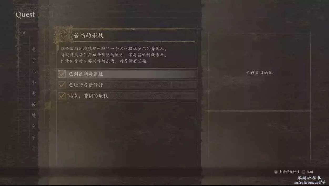 龍族教義 2 (Dragon’s Dogma 2) 苦惱的嫩枝任務完成方法 27 3 月 2024-03-27 廣告 作者:Resolution-議 來源:bilibili 苦惱的嫩枝 1.在主城的武器店,可以看到我們未來的大舅哥“格林多爾”,與之對話,繳納任意一把人類弓即可,開啟任務。 圖1 圖2 2.然後跑圖前往即可,流程比較簡單,非弓箭手職業的朋友們可以轉成弓箭手,示範以後到精靈村子或者回去再切換就行。 圖3