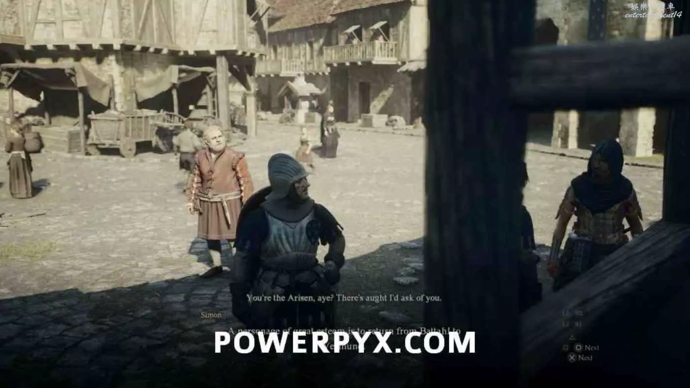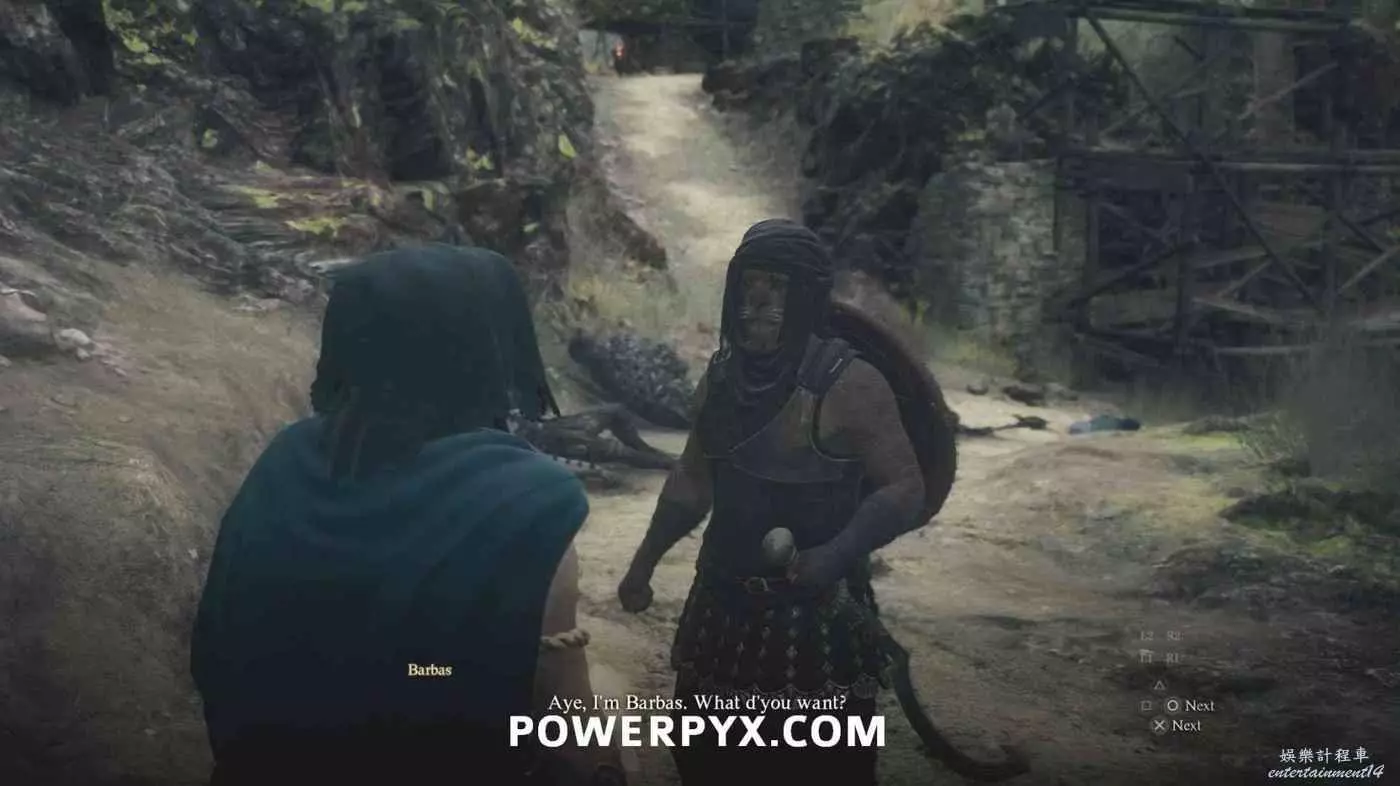 來到下圖所示位置與亞克基奧斯對話接取任務,他會要求我們將一封信交給一個叫厄尼斯特的人。