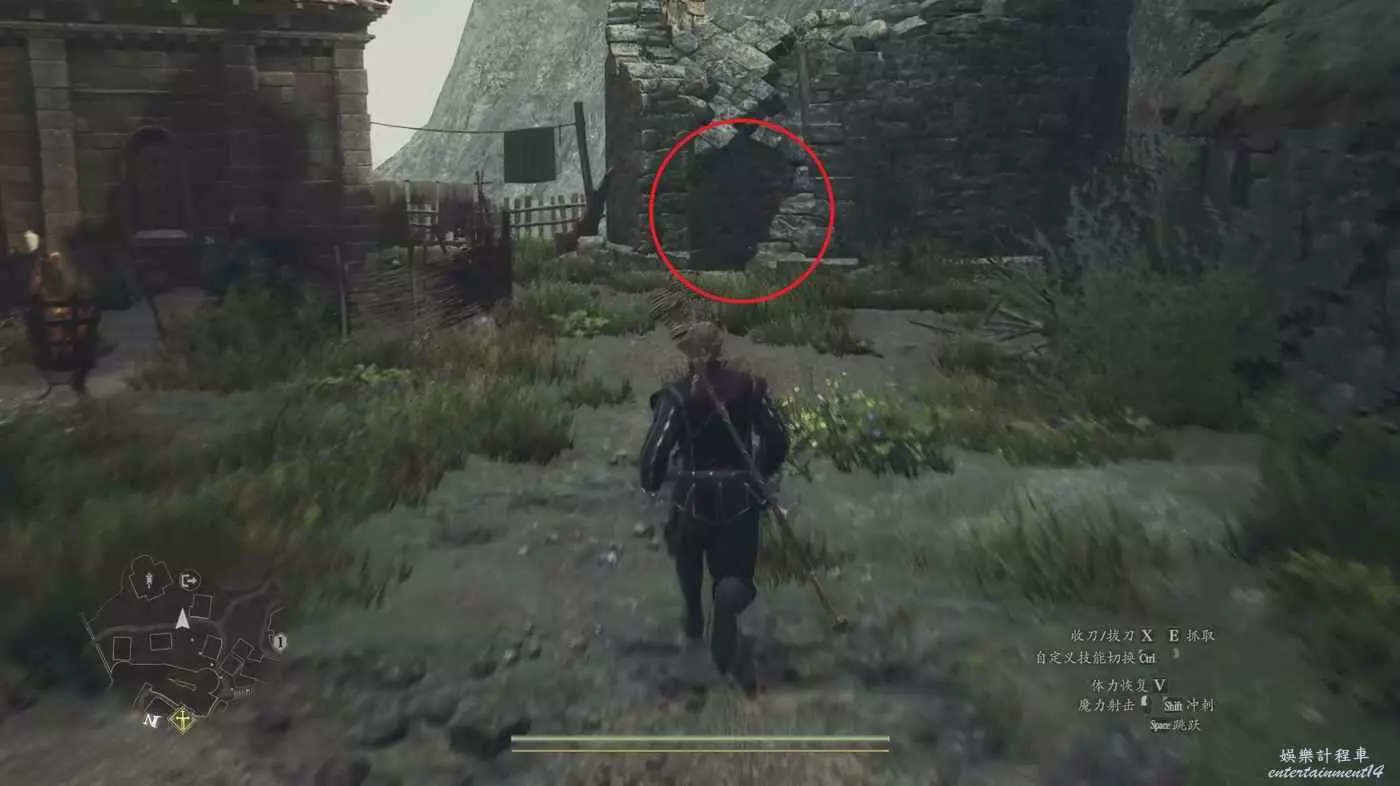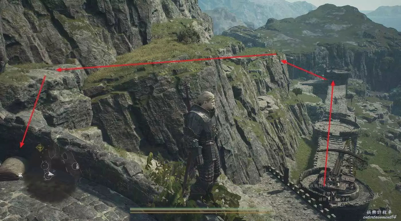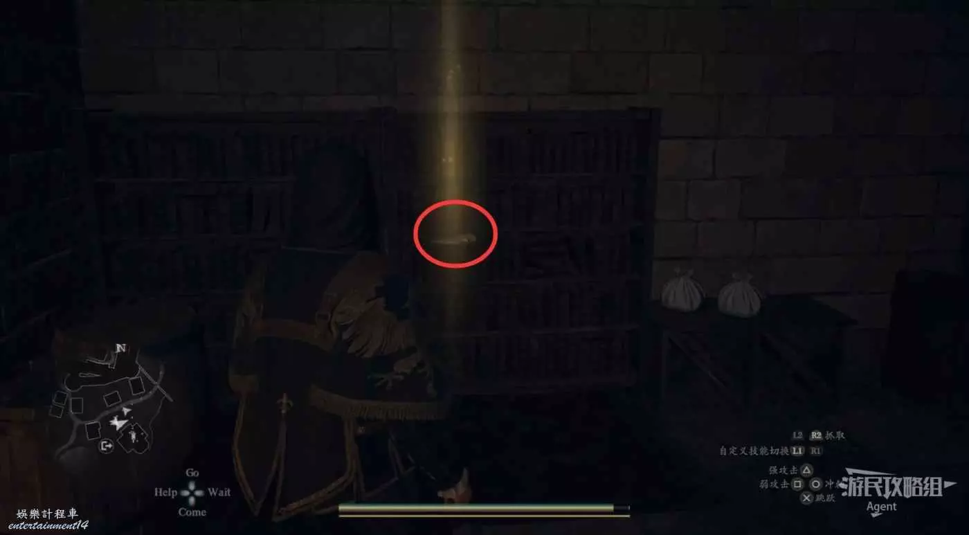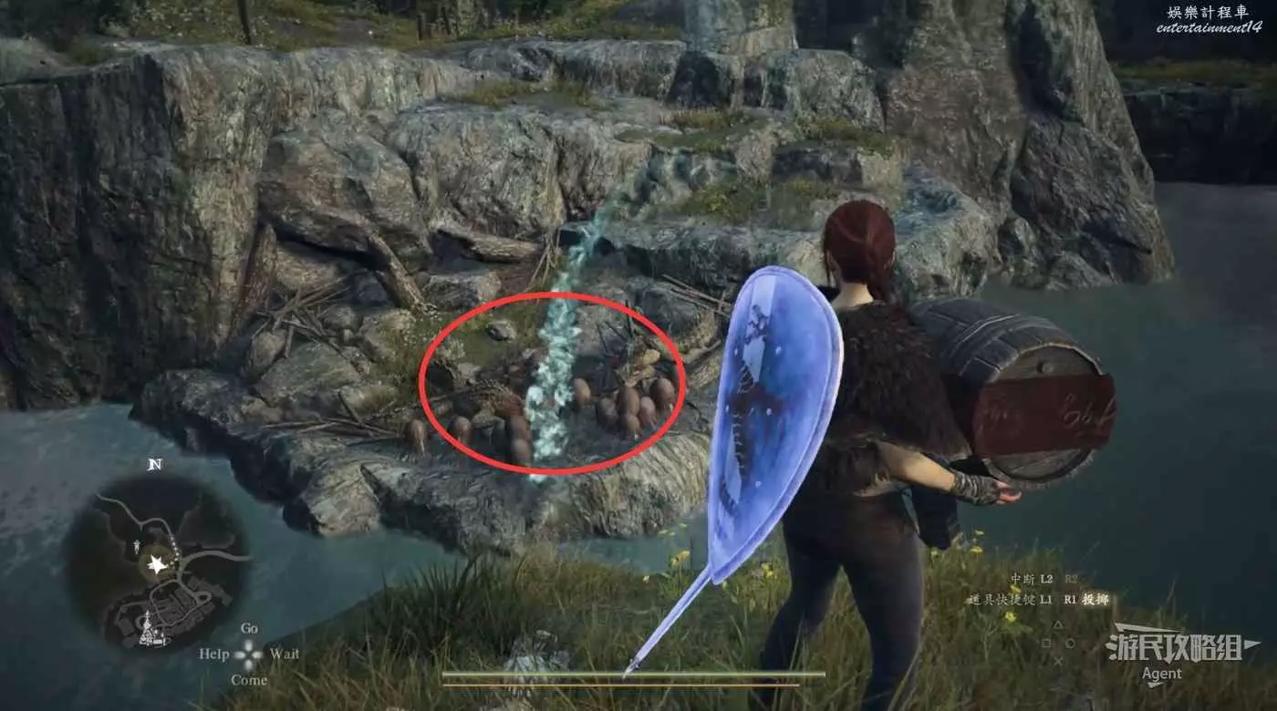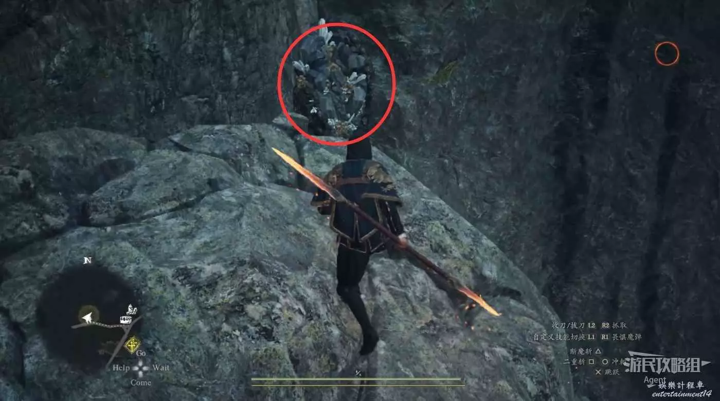到下圖圈出的位置,可以拿到之前拿不到的寶箱,同時放下梯子解鎖回營地的捷徑。