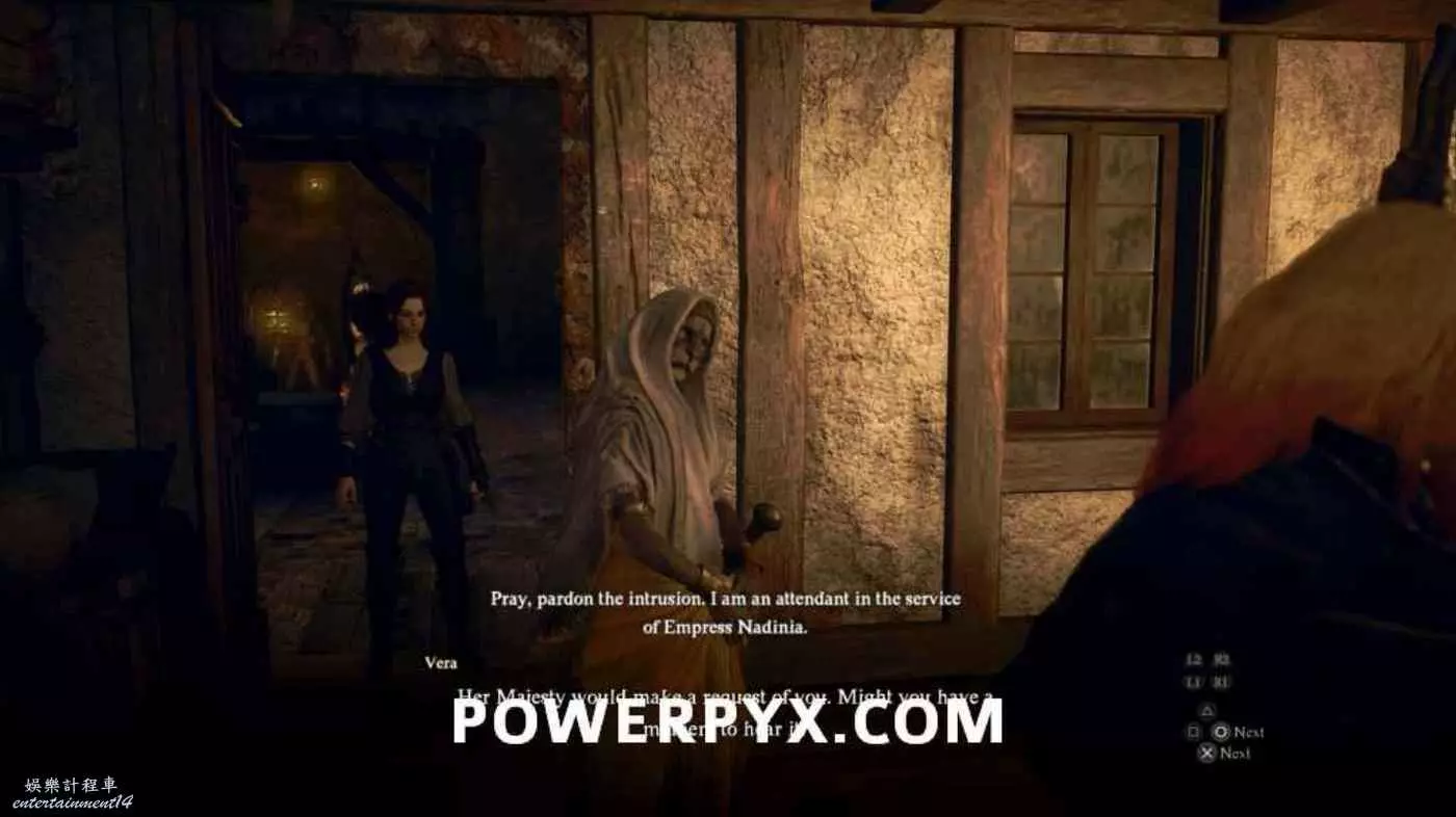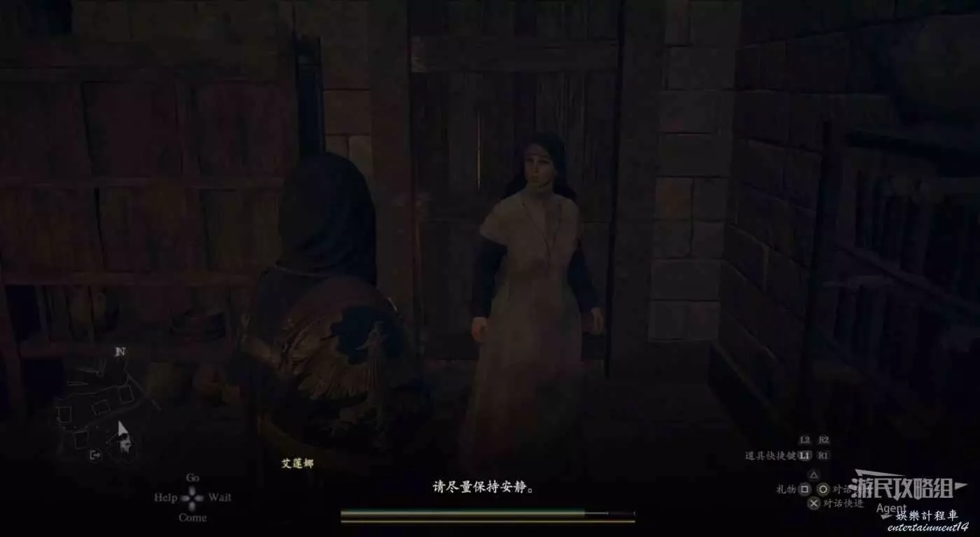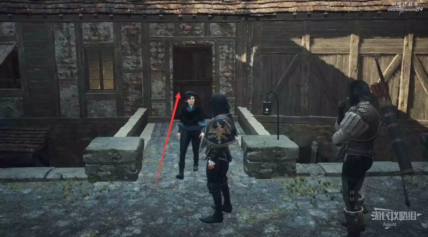 來到下圖所示位置,與屋內的梅內拉對話選擇我準備好了,將出現的賊人引誘到屋內,他會要求我們殺掉女王,這裡對著女王蓄力就行,不要射擊。