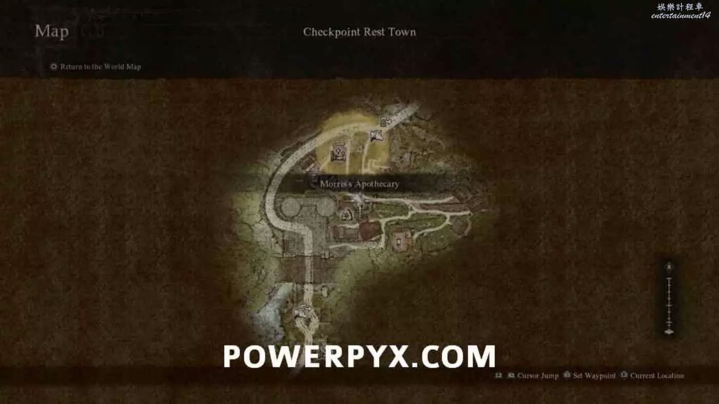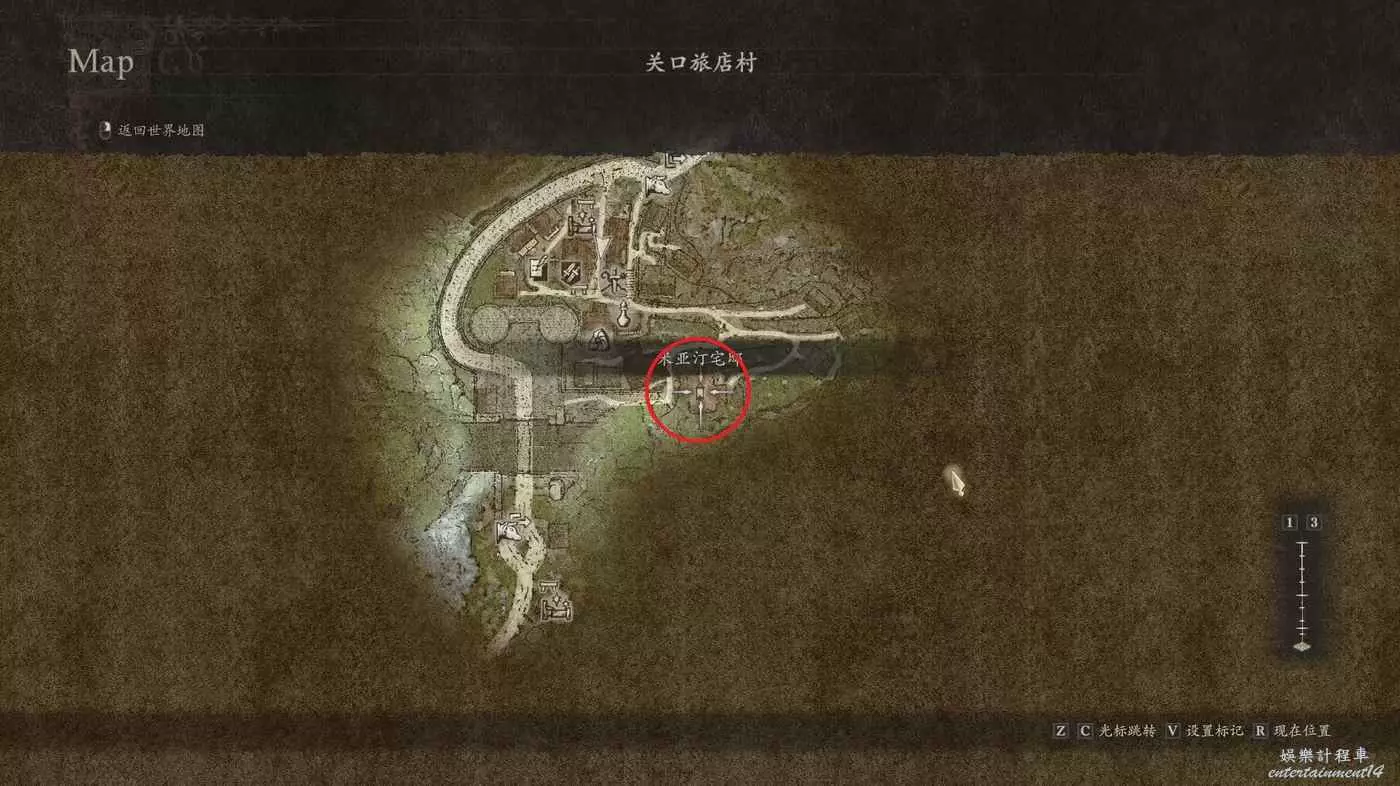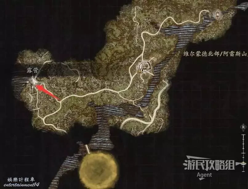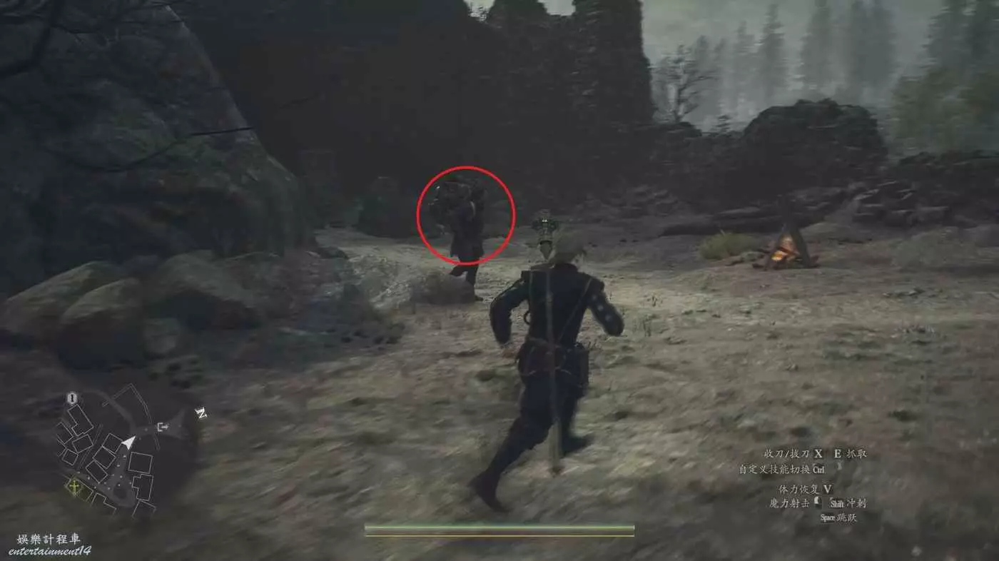 下圖位置有篝火和野營用具,可以露營。效果和旅店住宿一樣,回滿血。