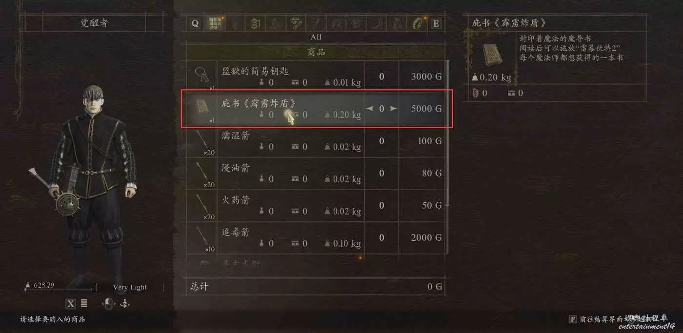 回到梅維村,村口商人(就是賣監獄鑰匙的商人)處買到庇書《霹靂炸盾》。注意買完書這個商人就會離開到別處去了,想買別的東西的話最好先買了。