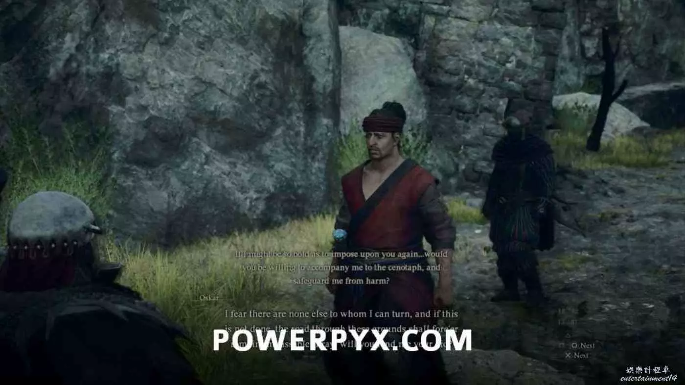 前往下圖所示的位置與士兵對話開始護送牛車,接著會觸發與拉格納的劇情。