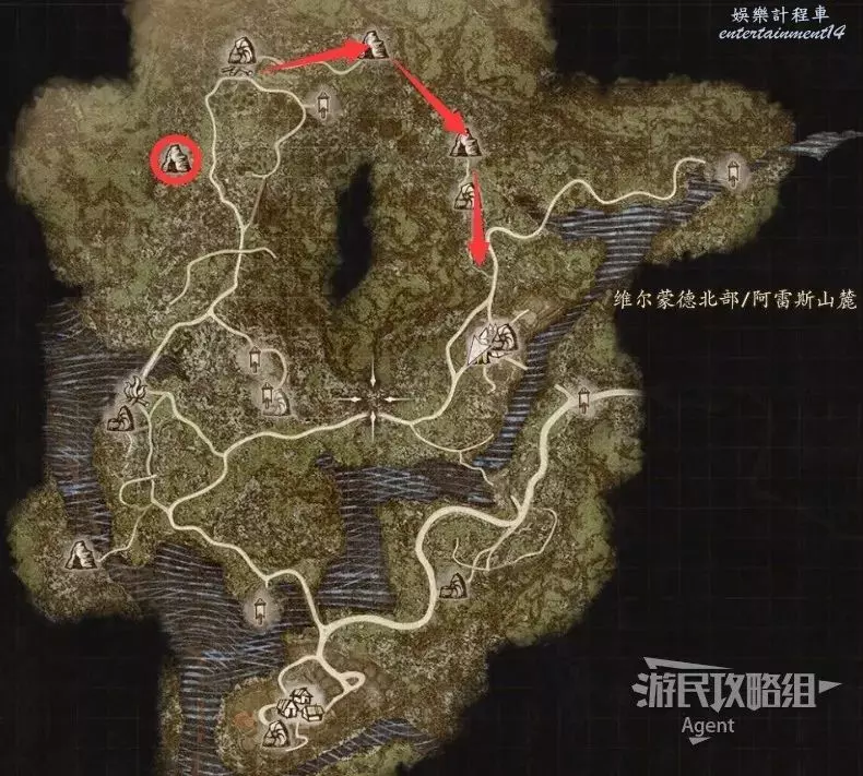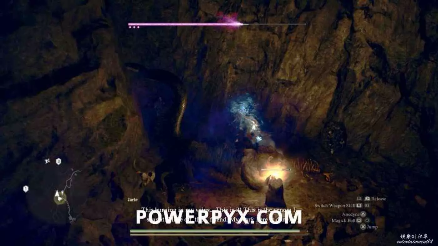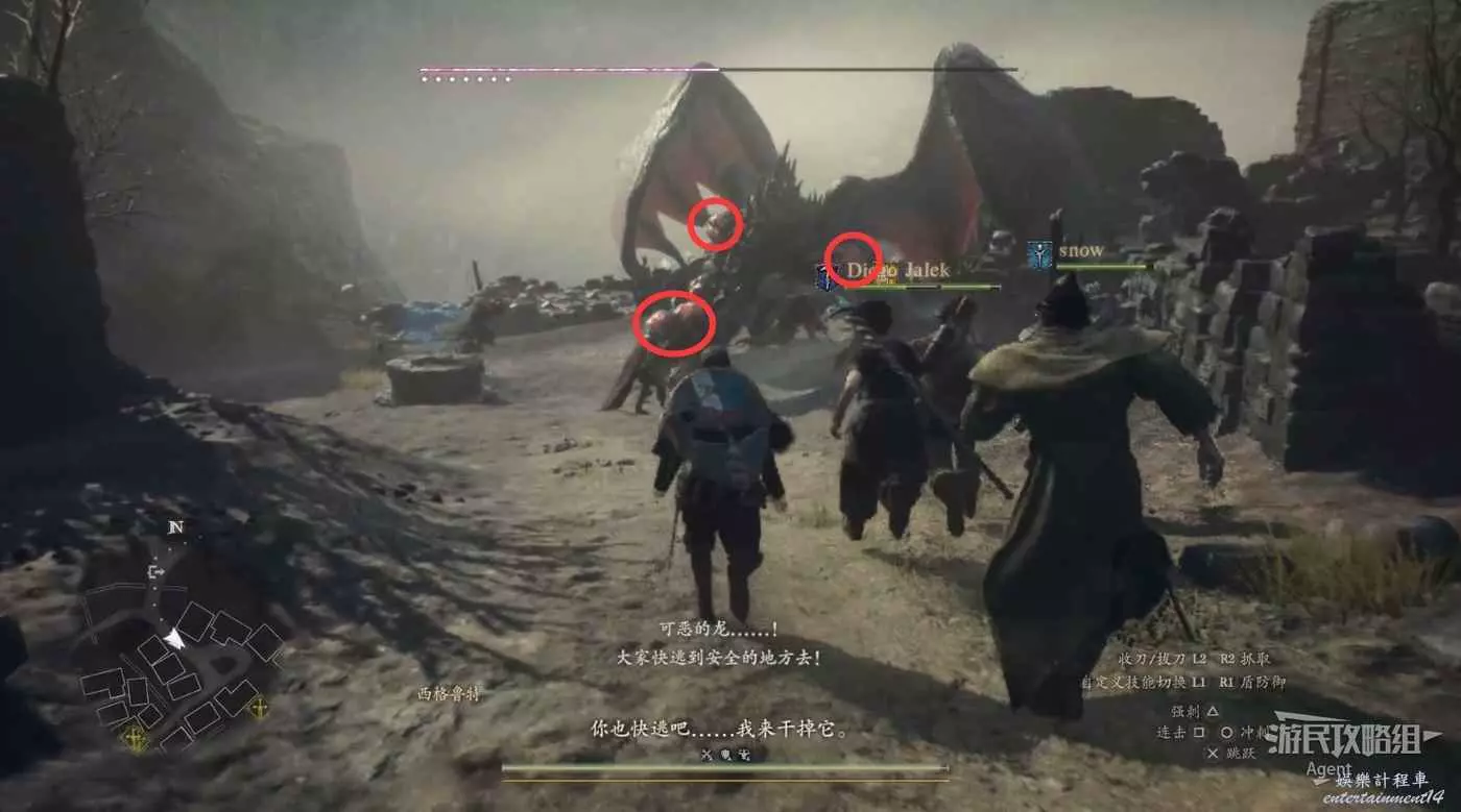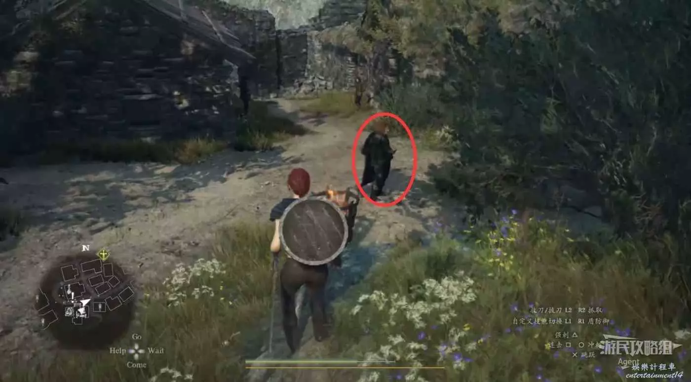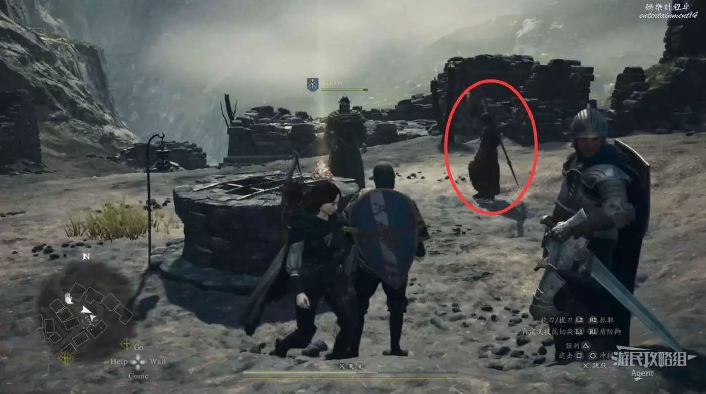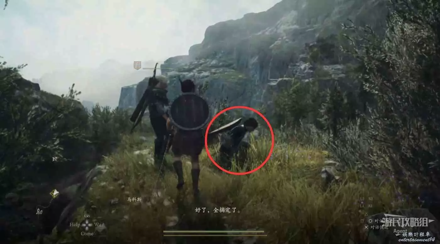 帶著亞爾來到上圖位置與奇美拉戰鬥,這裡需要保證老登不死的情況下讓老登中奇美拉的毒。