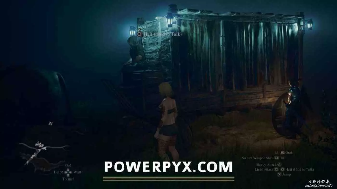 在晚上回到幽靈牛車出現的位置,脫光身上的裝備與駕駛牛車的NPC對話上車,跟著被拐賣的追隨者一塊前往未知的目的地。