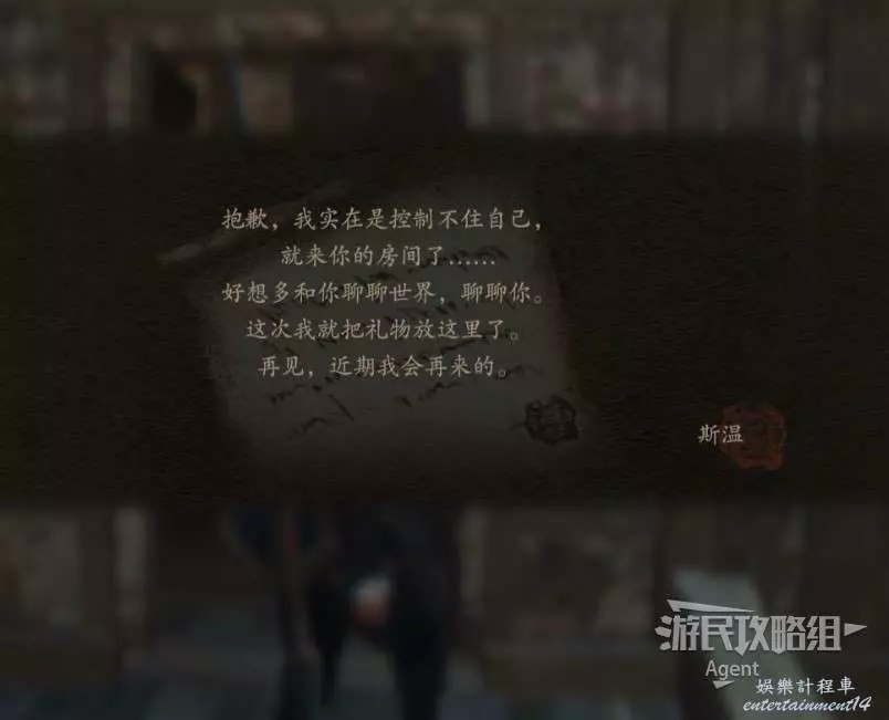 過些天回家時,發現斯溫在你家門口留了禮物和信。