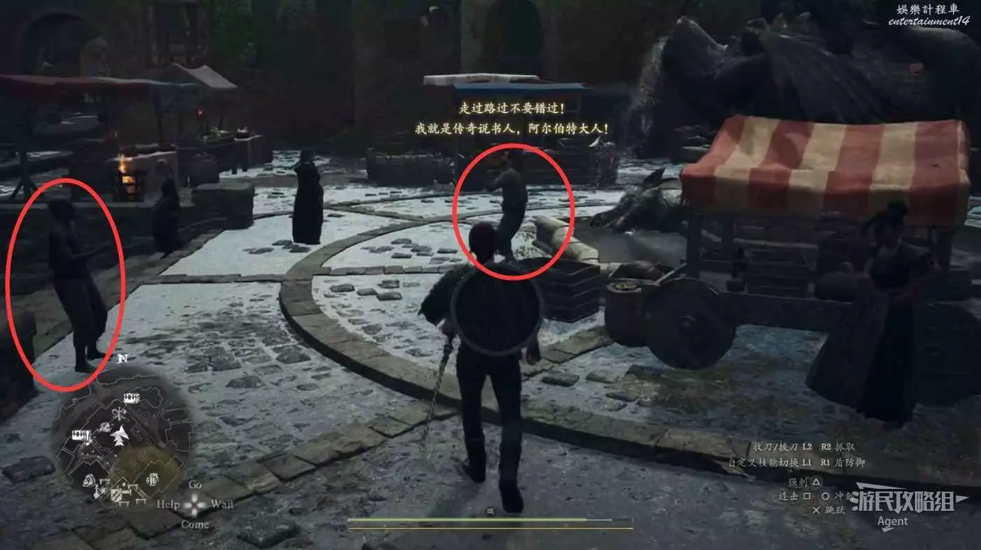 武器店前的廣場上,圍觀群眾覺得乞丐說書人出手太闊綽了不正常,接到支線任務“功罪的棋子”。