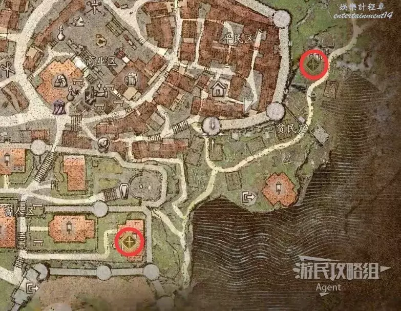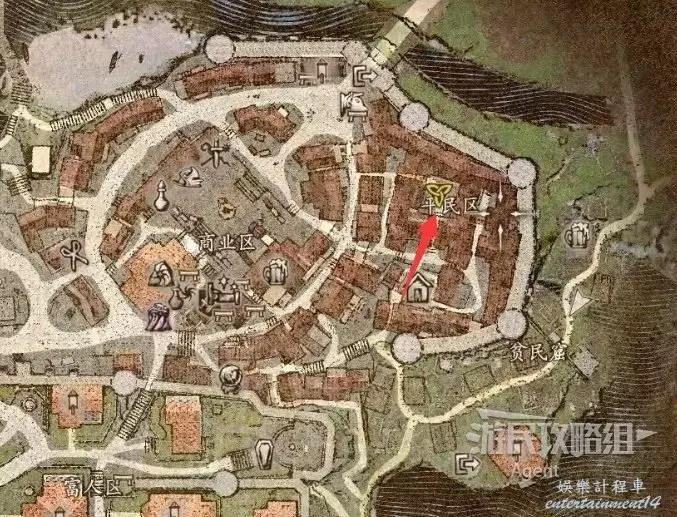 繼續等,一直等到天黑,他會離開酒館,到平民區的下圖位置的房子裡休息。(就在你家附近)