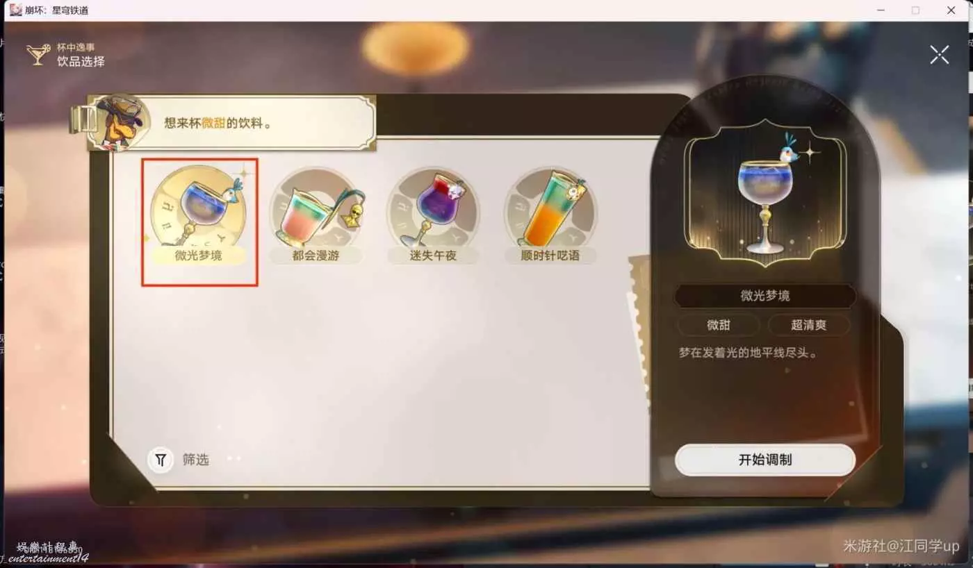 (3)第2次【司令】要求【微甜】,選擇第1個飲料【微光夢境】