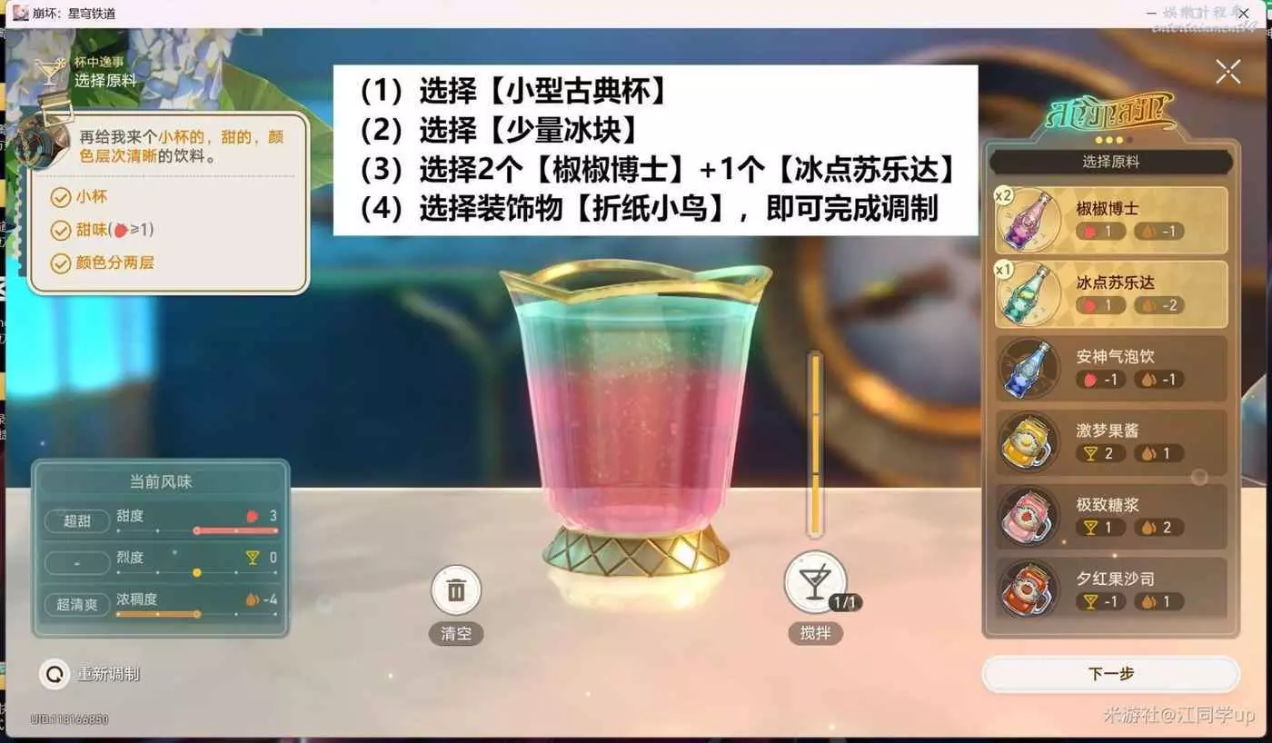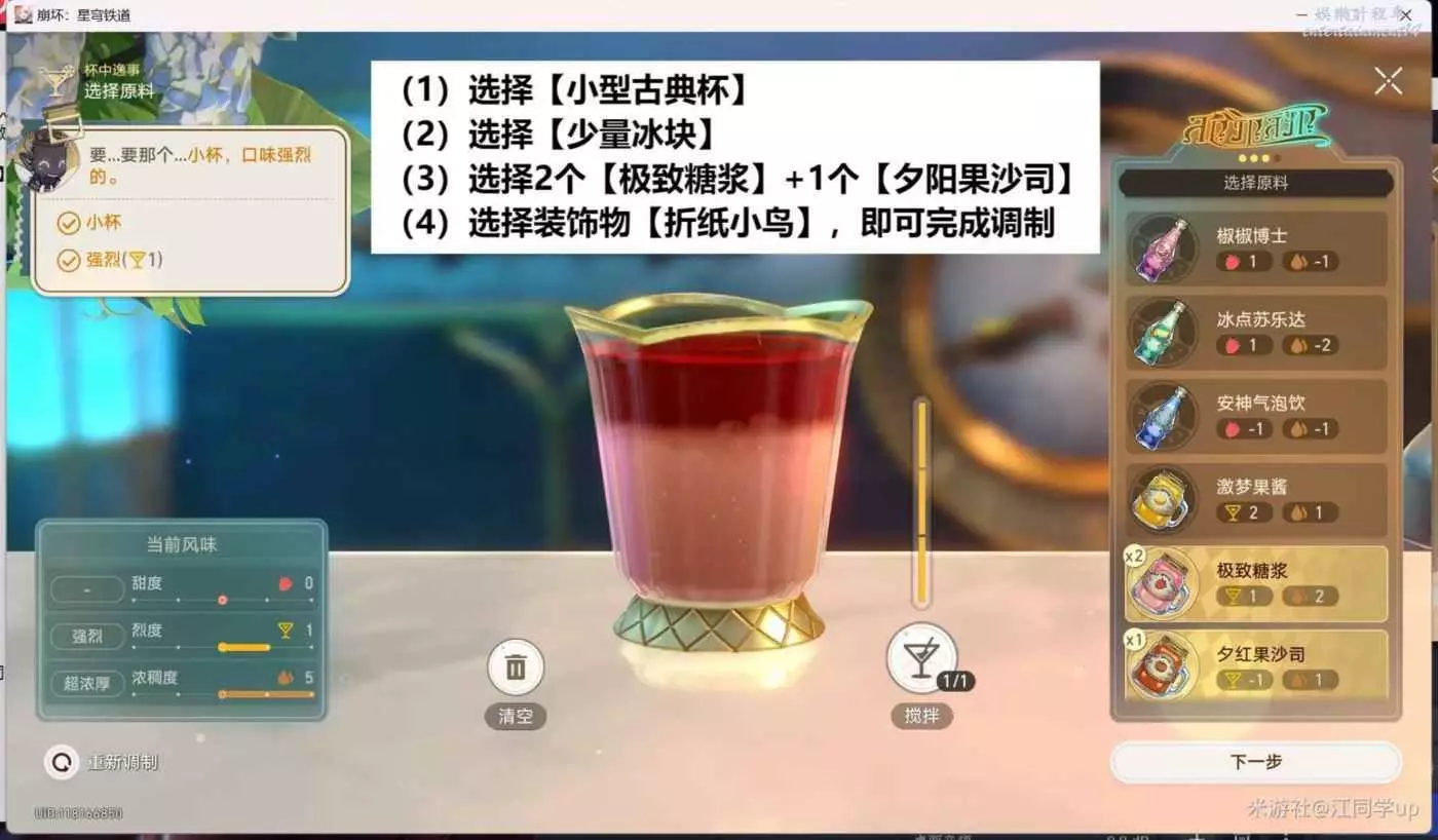 (4)根據左上角的【操作步驟】依次完成飲料【都會漫遊】調製即可