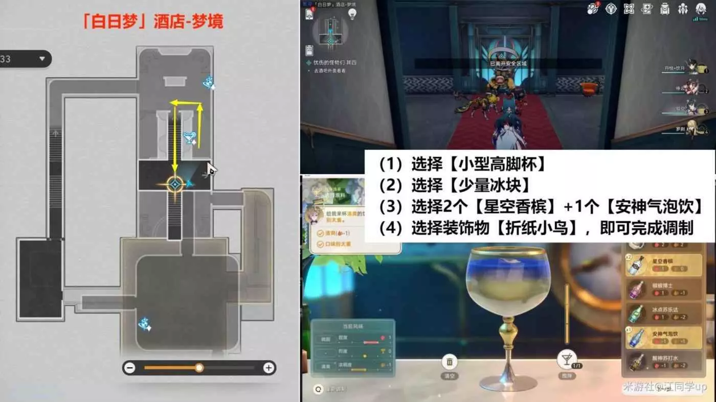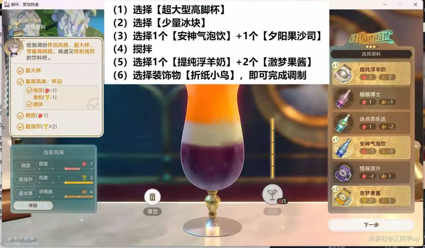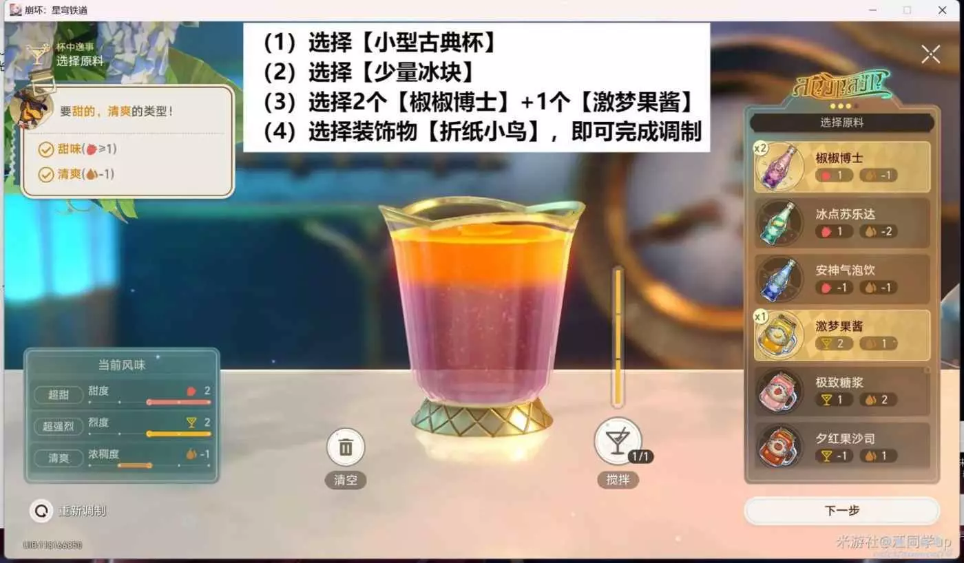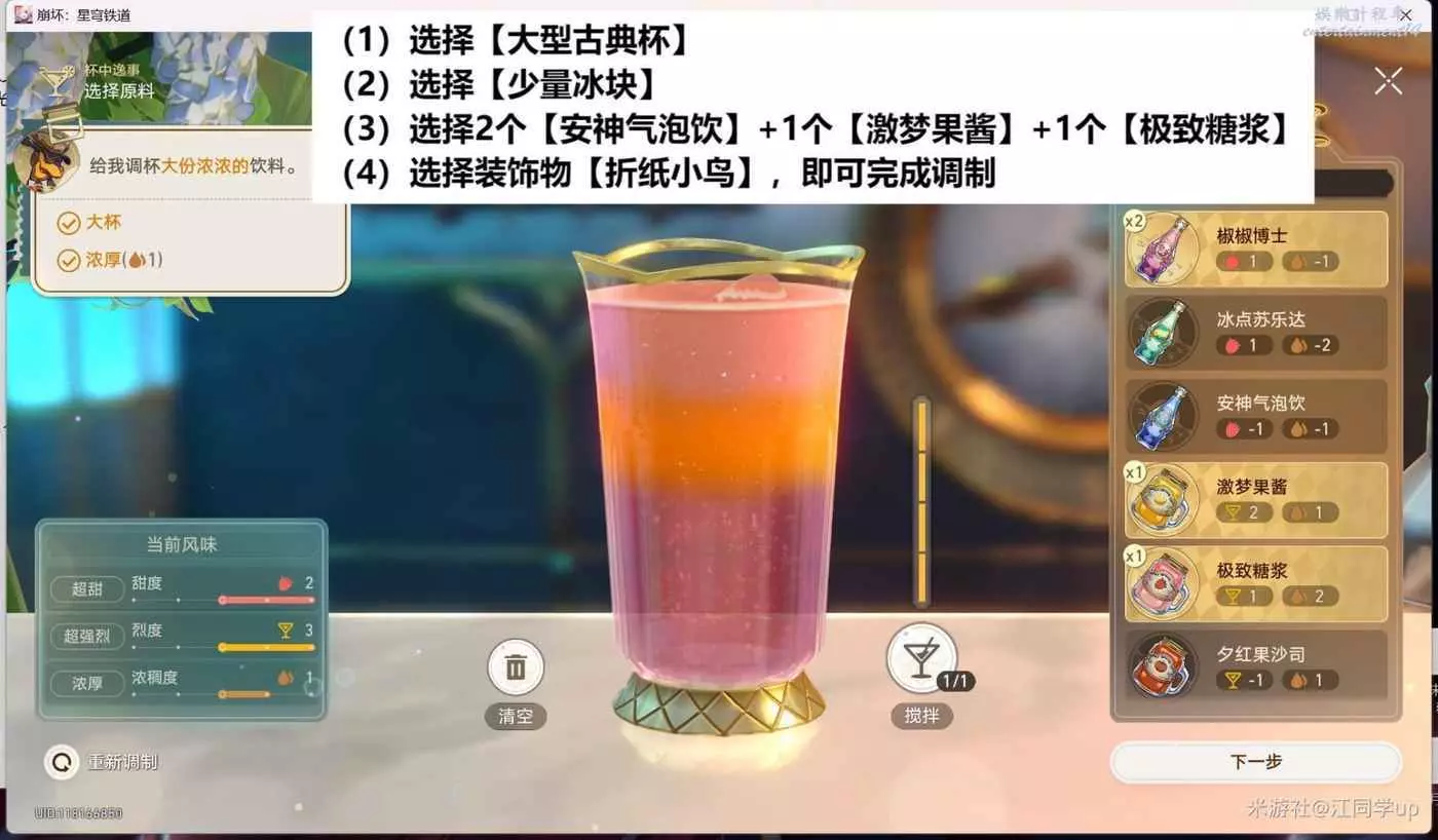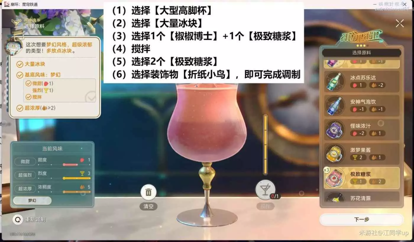 (4)根據左上角【操作步驟】依次完成飲料【微光夢境】調製即可