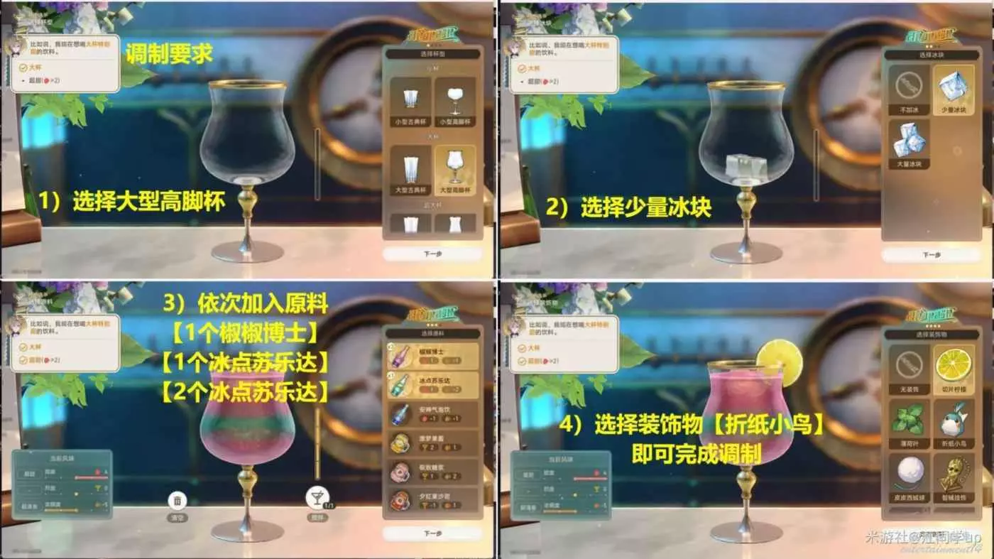 1、前面部分追蹤任務走即可,接著需要製作【最適合我的飲品】,這個隨便做即可,可參考我的方式