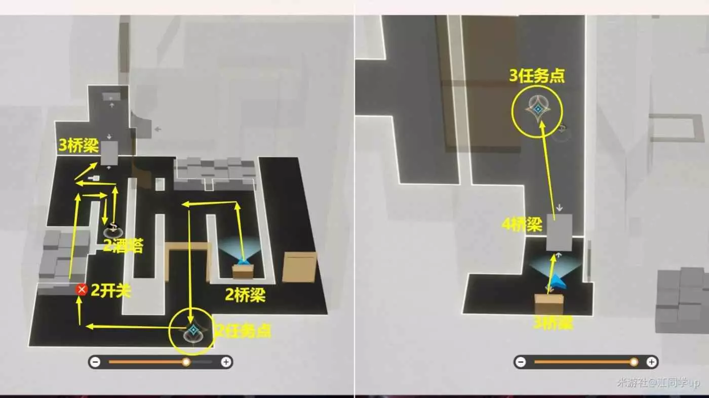 (3)從【3橋樑】上來後,去【2任務點】和【黑桃】對完話,接著打開【1開關】,回到【1酒塔】再次獲得次數後,從【4橋樑】上去,接著從【5橋樑】上去,和上面【3任務點】的【黑桃】對完話後,副本結束