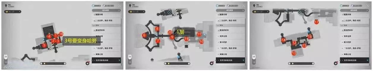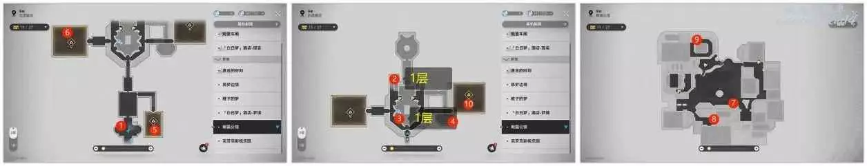 下面就來看看各個地圖中折紙小鳥的位置吧