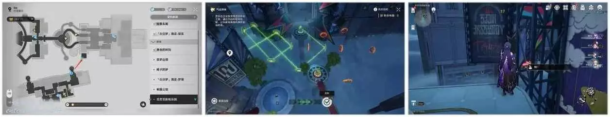 在酒塔處獲取夢泡後,依次經過橋1、橋2、橋3,最後5號小鳥在角落的恐龍氣球裡