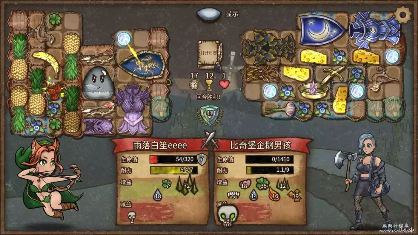 中期有了轉職,雙刺弓加單盾加水果是戰鬥力正強的時候,這之後,無論是補暗甲,月盾還是來鳳梨,在擺好轉職星級後,都可以納入構築。這一套的強處在,如果你的開局雙刺帶盾是完整的。那麼在之後的無論是什麼來牌,補甲,盾,頭盔,鳳梨,戰鬥力都是相當的。這意味著爛分能力更強,在不遇到龍鳴珠龍法的時候,基本是贏,對於半成的十字軍,也有一戰之力,同質量的各種女巫,應該都不算好處理這套陣容。壓力稍微小一點,基本就是滿血進轉職或者四五血加時。因此,穩定性很高,用頭盔,黑心,王冠補充上限,就可以解決二十草,龍鳴珠等構築,他具備應對各種陣容的解法,但是真正你能拿到什麼樣的補強裝備還是看來牌,滿血進加時大幾率會輸兩到三把,上限有,但是不多,穩定性高,在刺弓開局時,上分首推