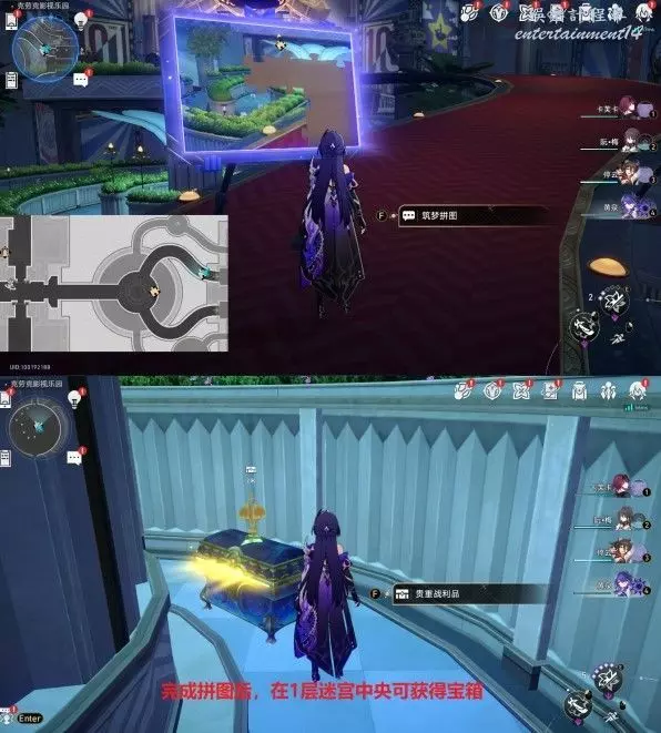 【築夢拼圖】解謎寶箱,完成拼圖後會顯現出1層的花園迷宮的出口,且寶箱也會隨之出現在迷宮中央。