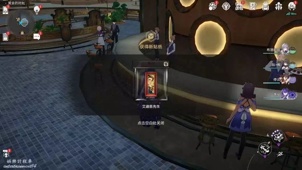 貼紙位置在地圖【黃金的時刻】2層艾迪恩公園中心的酒吧台處。