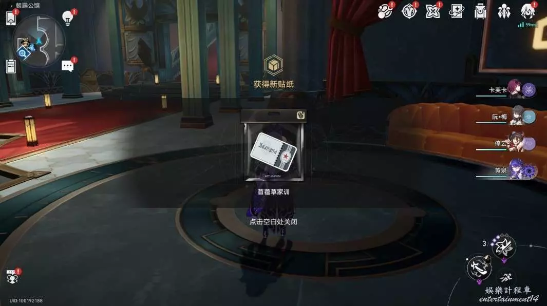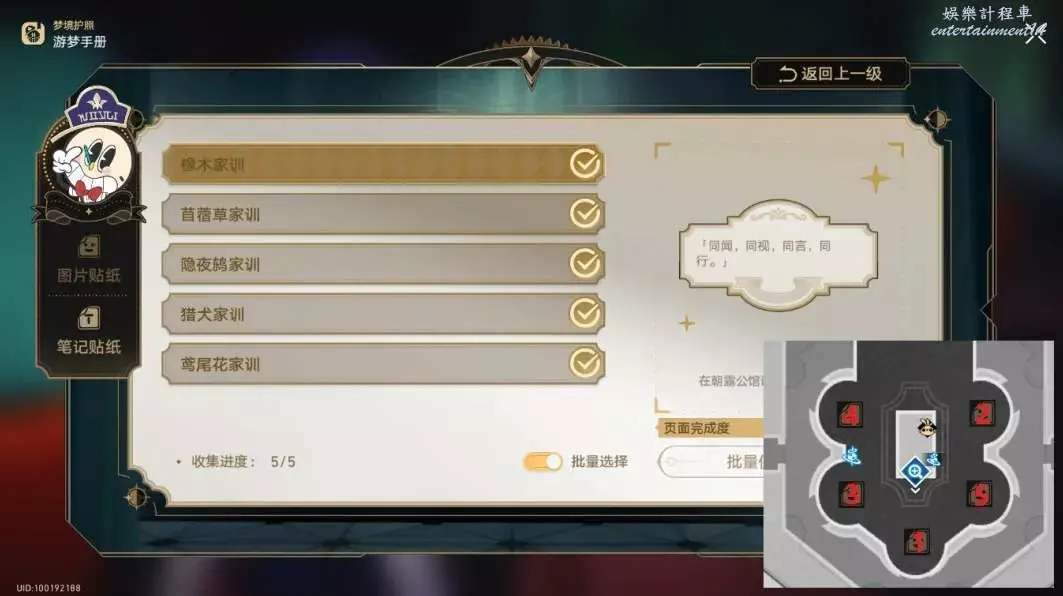 PS:五大家族的家訓貼紙均在地圖【朝露公館】1層夢主大廳周圍。