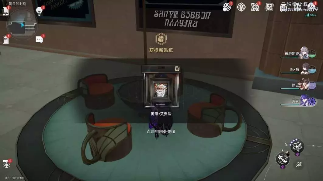 貼紙位置在地圖【黃金的時刻】2層奧帝商業中心北區餐桌上。