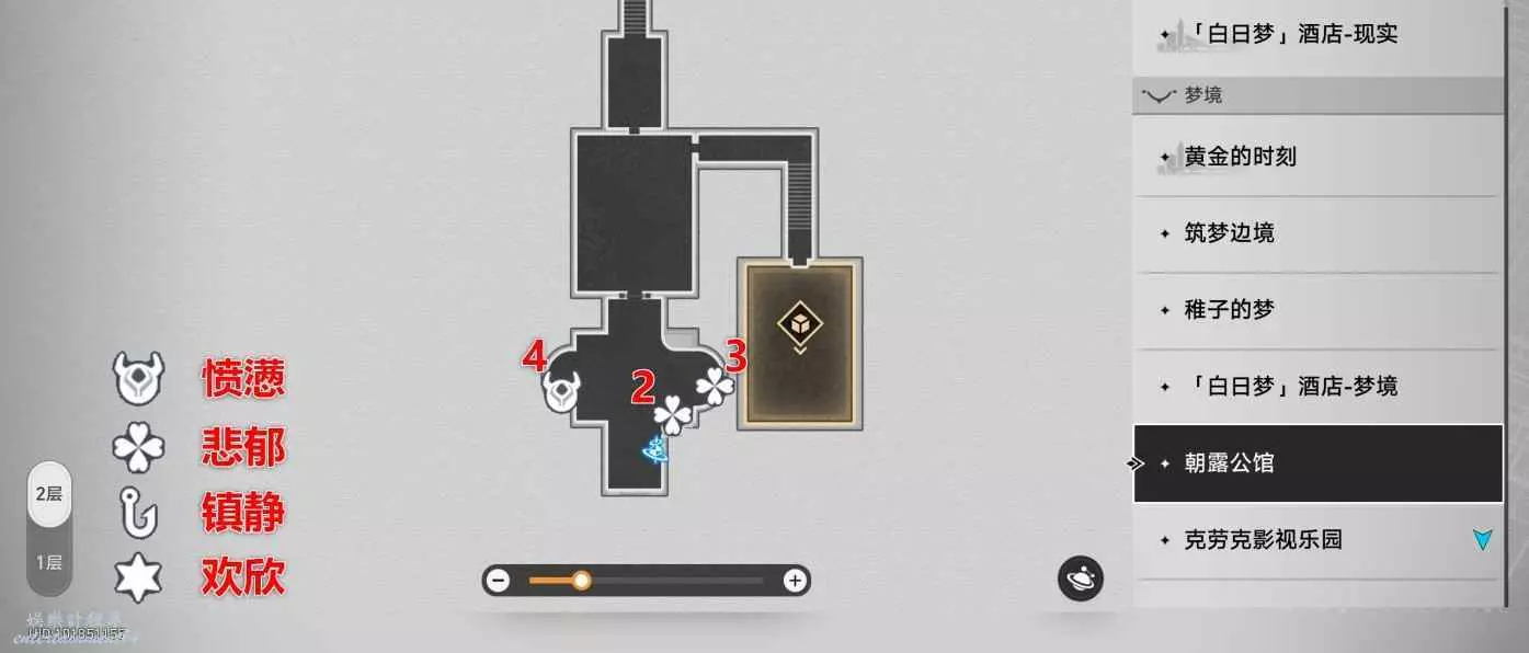 崩壞 星穹鐵道 2.1情緒齒輪收集攻略 2 4 月 2024-04-02 廣告 作者:祈鳶ya 來源:米遊社論壇 注意事項: (1)2.0的情緒齒輪收集,可以詳見該貼 這篇講一下2.1新增的情緒齒輪 (2)溢出的數量為,7個鎮靜,10個歡欣,13個悲鬱,17個憤懣 情緒齒輪點位一覽(共12處) 情緒齒輪實機點位 (1)夢境酒店新增了一個 (2)朝露公館 (3)克勞克影視樂園