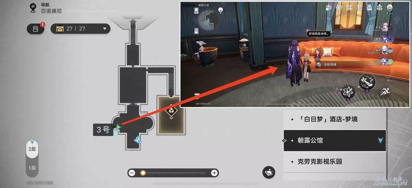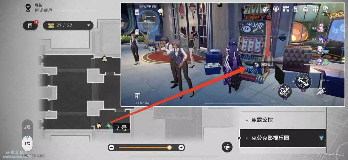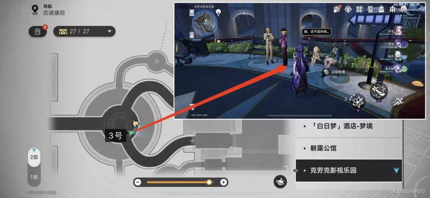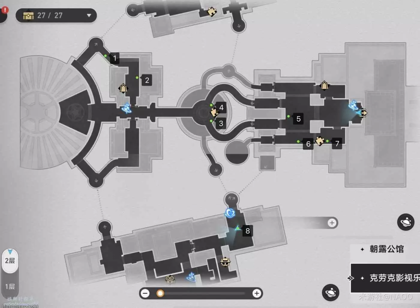崩壞 星穹鐵道 2.1匹諾康尼新增情緒齒輪收集攻略 2 4 月 2024-04-02 廣告 作者:NAOO 來源:米遊社論壇 任務概述 與夢境中人對話汲取其情緒,獲得情緒齒輪 情緒齒輪 共12個,3個歡愉+4個悲鬱+5個憤懣 預計用時 10分鐘 朝露公館 1號齒輪 2號齒輪 3號齒輪 克勞克影視樂園 1號齒輪 2號齒輪 3號齒輪 4號齒輪 5號齒輪 6號齒輪 7號齒輪 8號齒輪 白日夢酒店-夢境一層