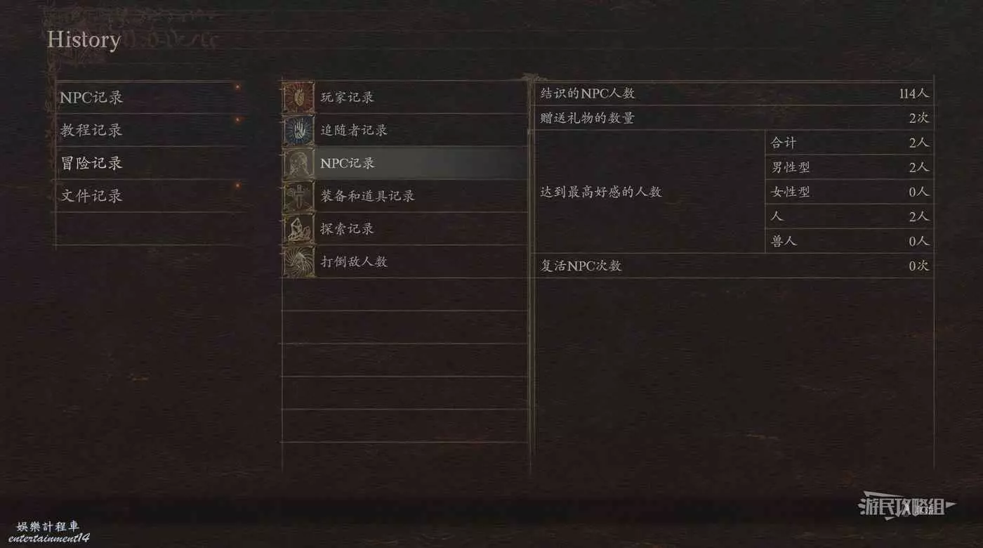目前無法查看好感度的具體數值,但在「History」的冒險記錄-NPC記錄中可以看到當前達到最高好感度的NPC數量。但實際上誰的好感度最高是無法確認的。