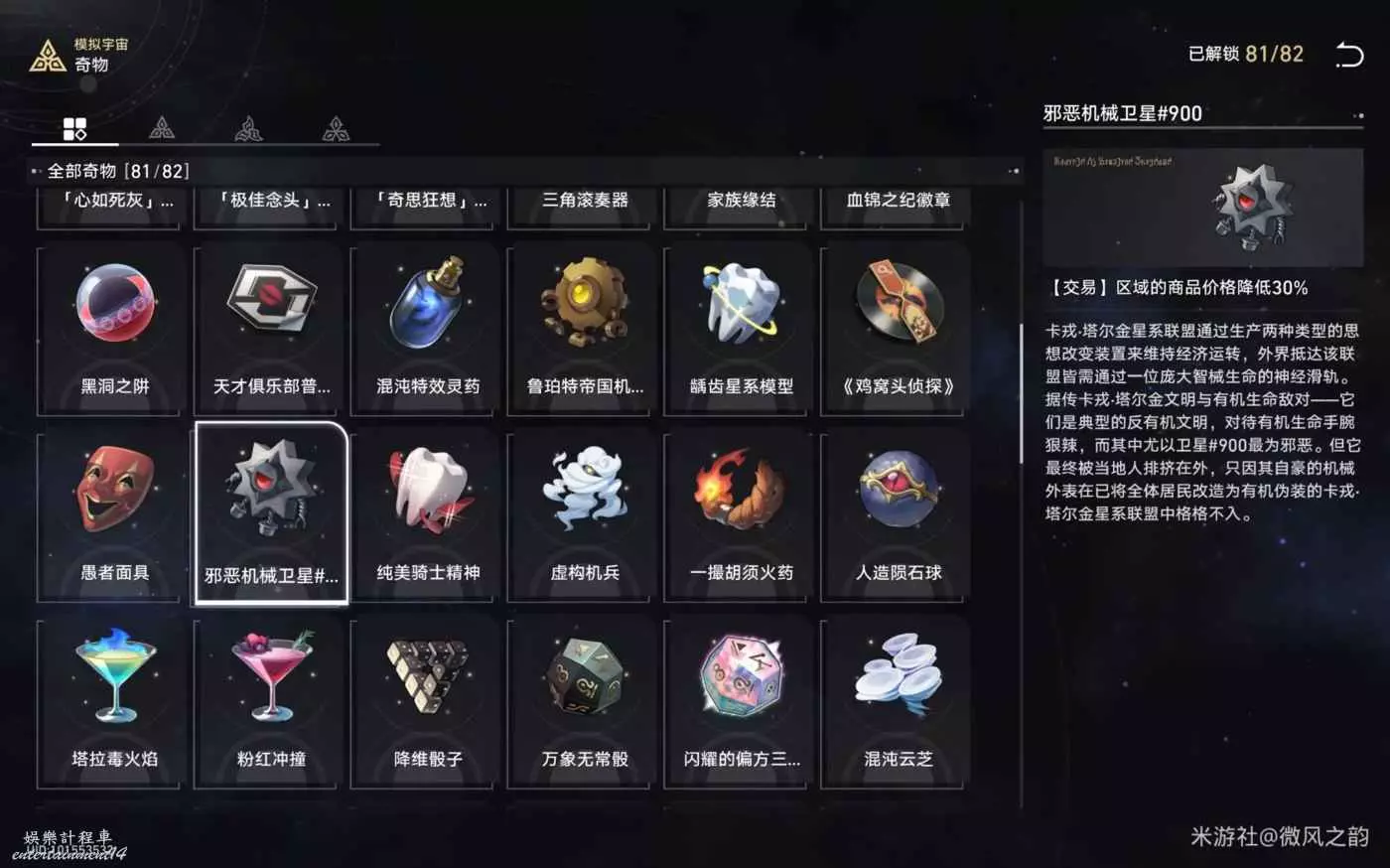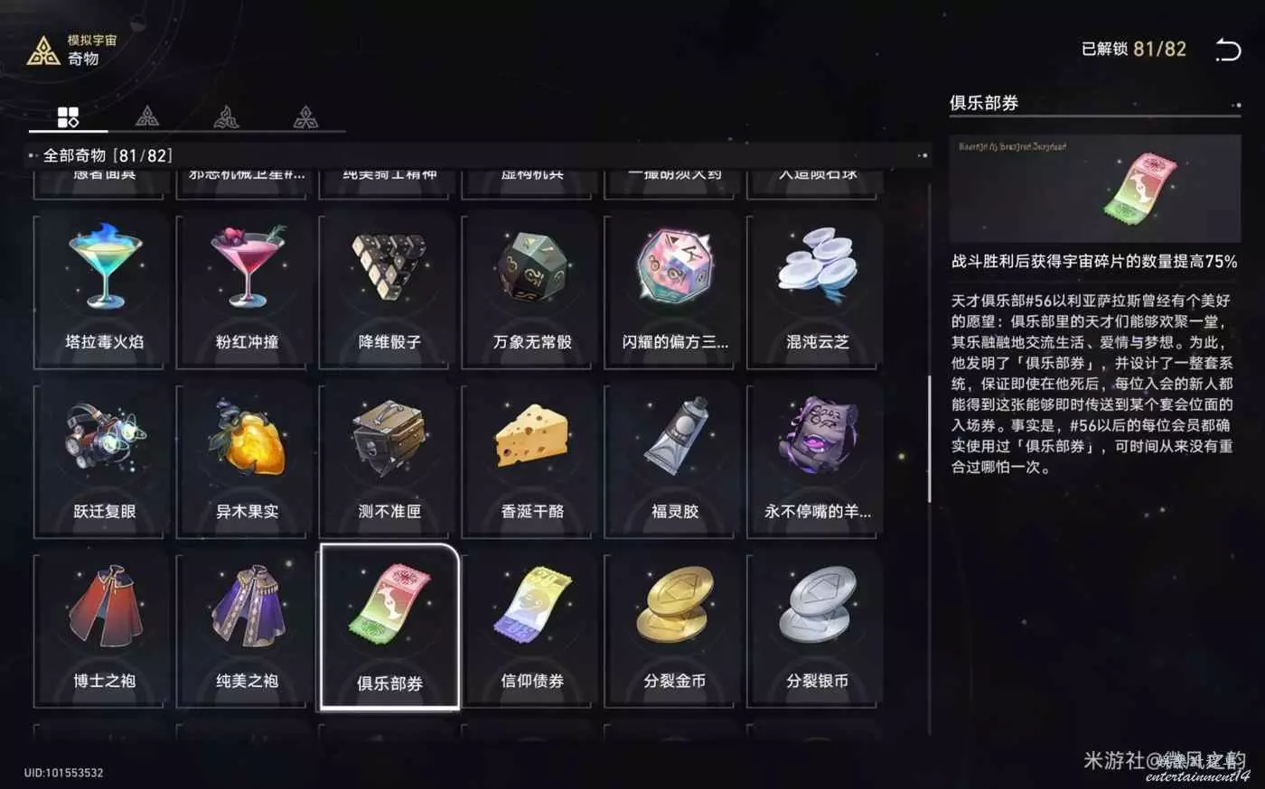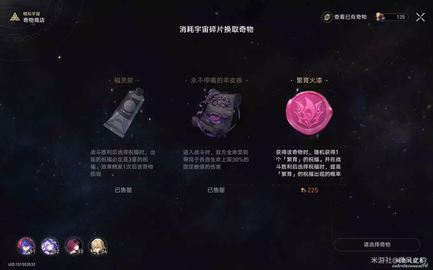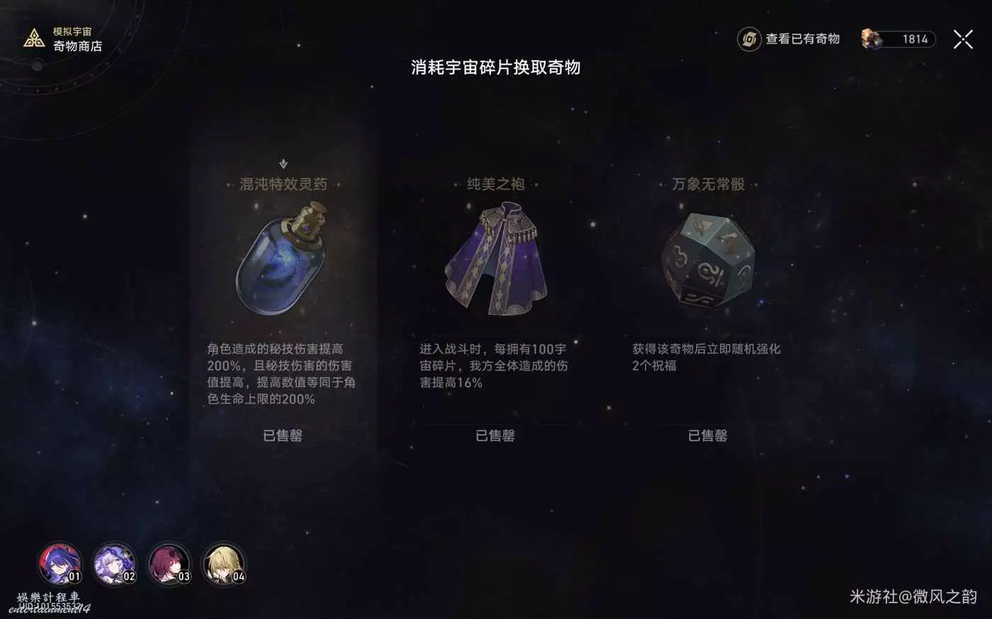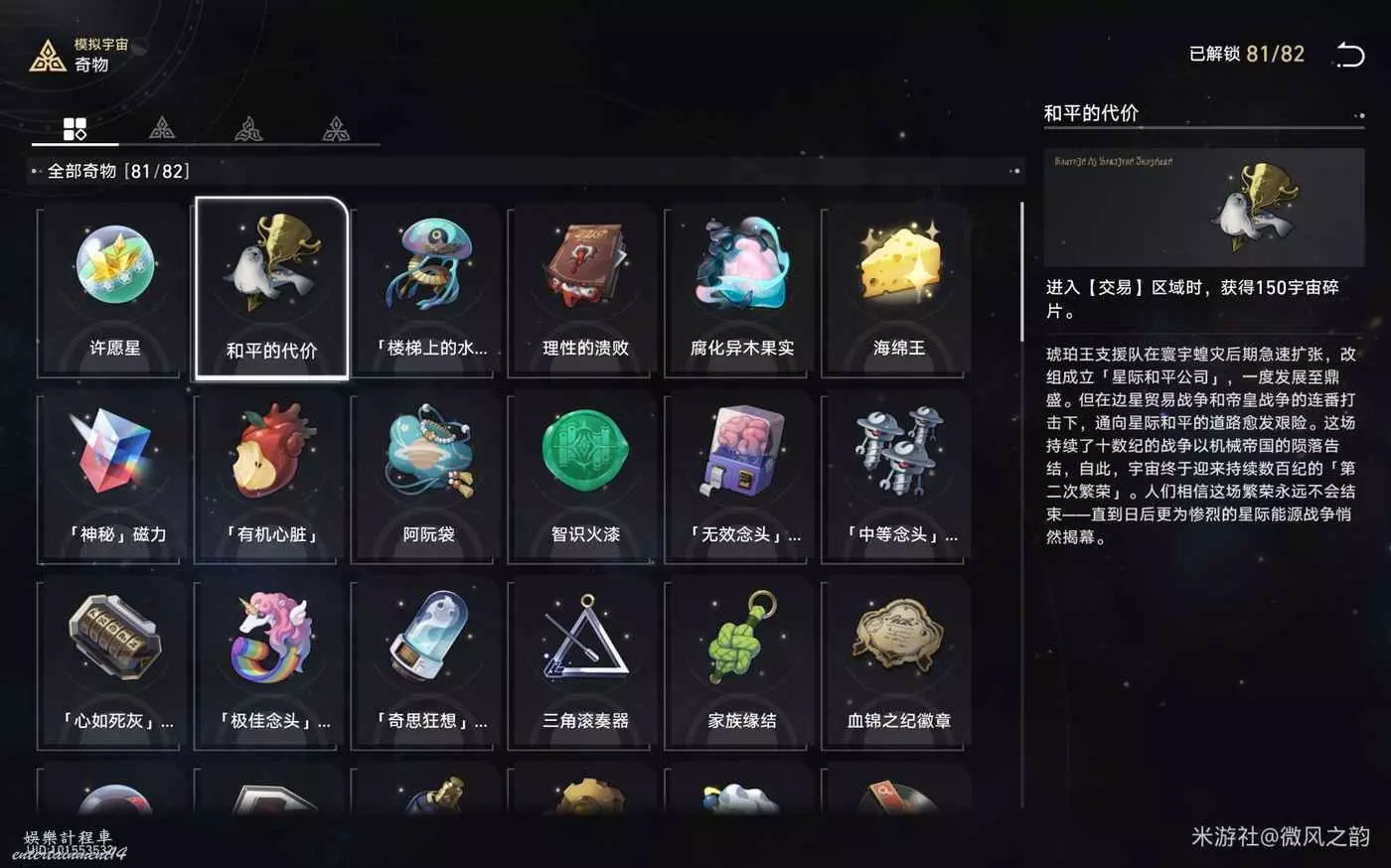 還有一些奇物對我們來說遇到了就是錦上添花的作用,總結下來就是,怎麼可以獲得更多的宇宙碎片就怎麼選,然後盡可能的去交易區消費宇宙碎片。