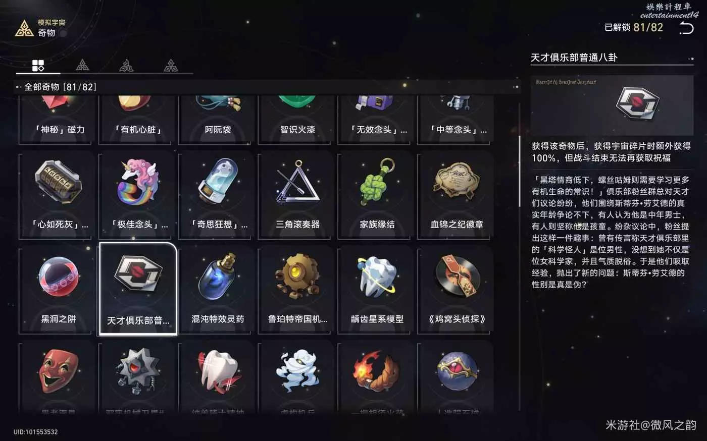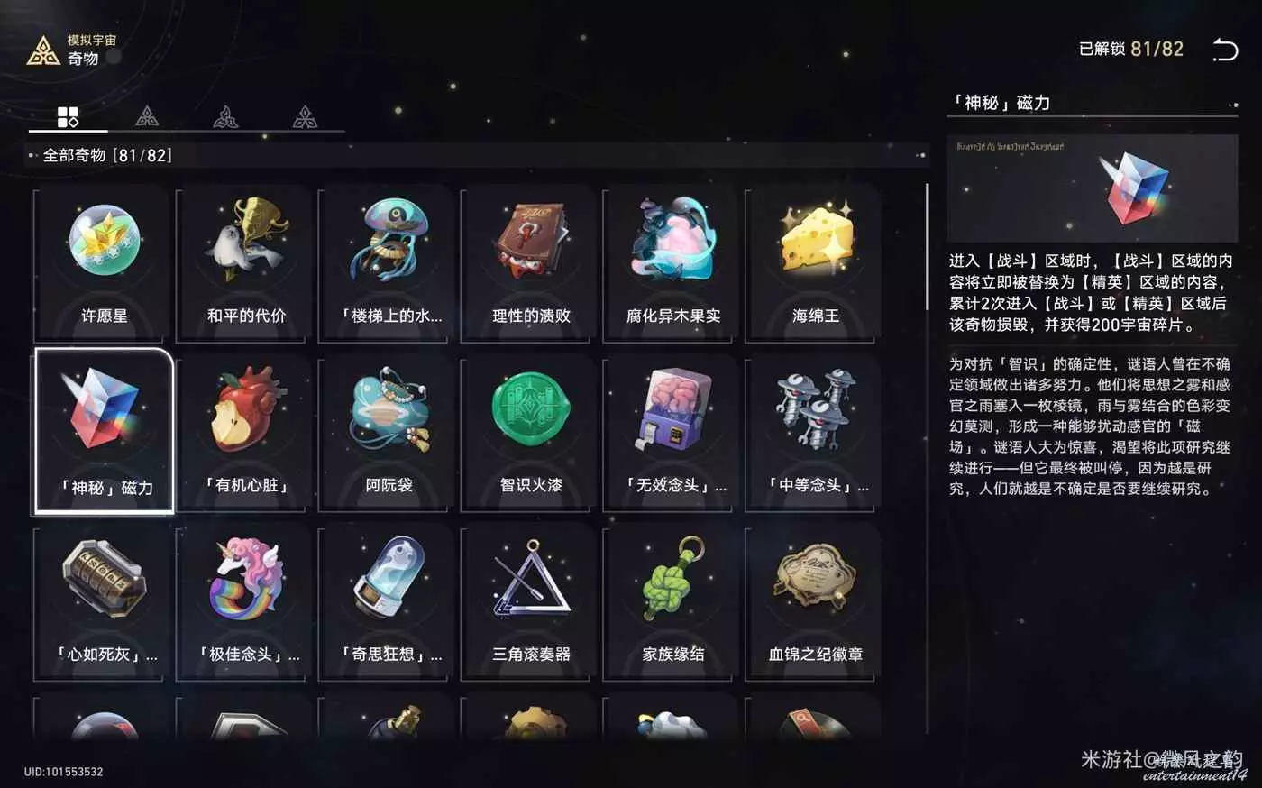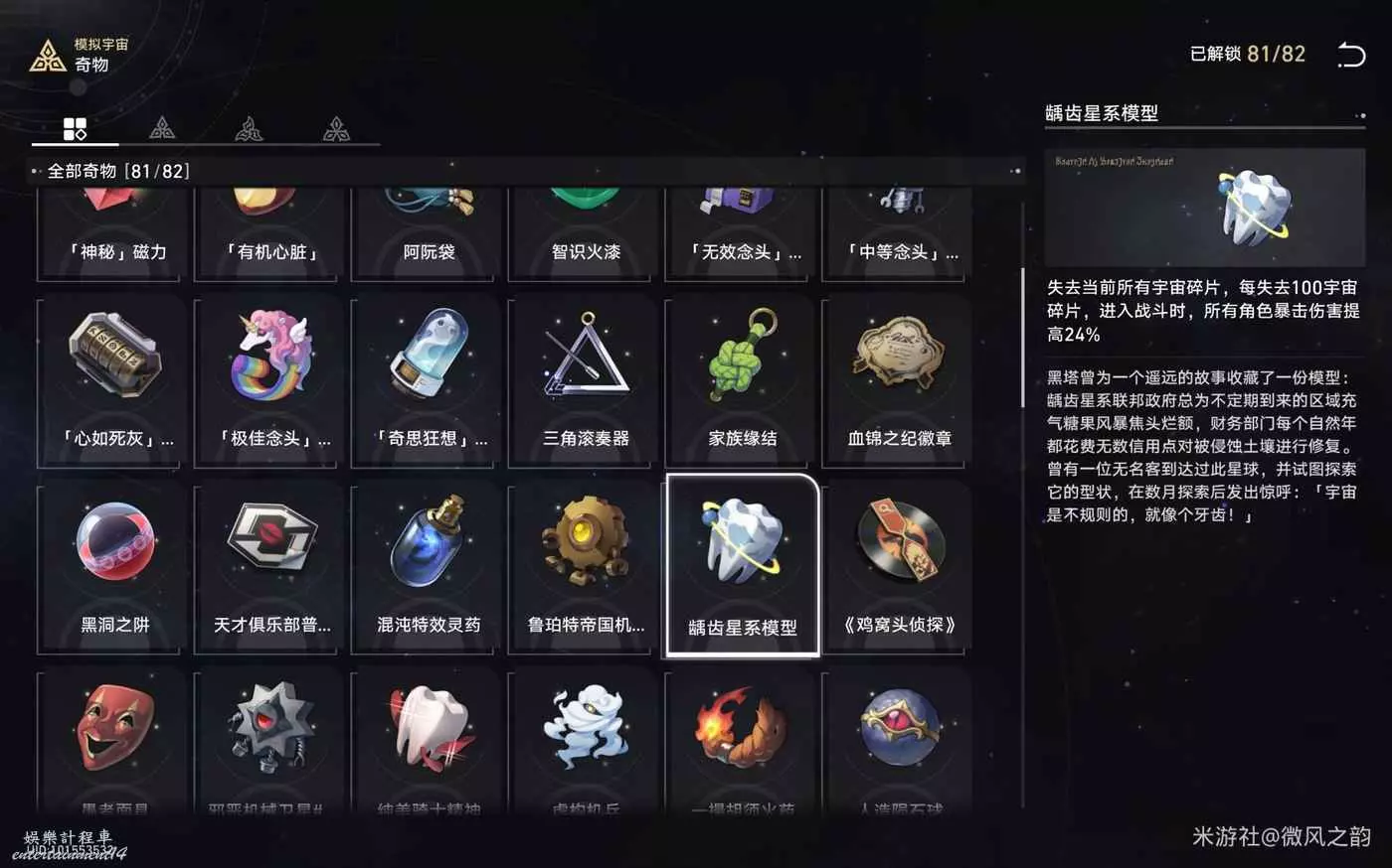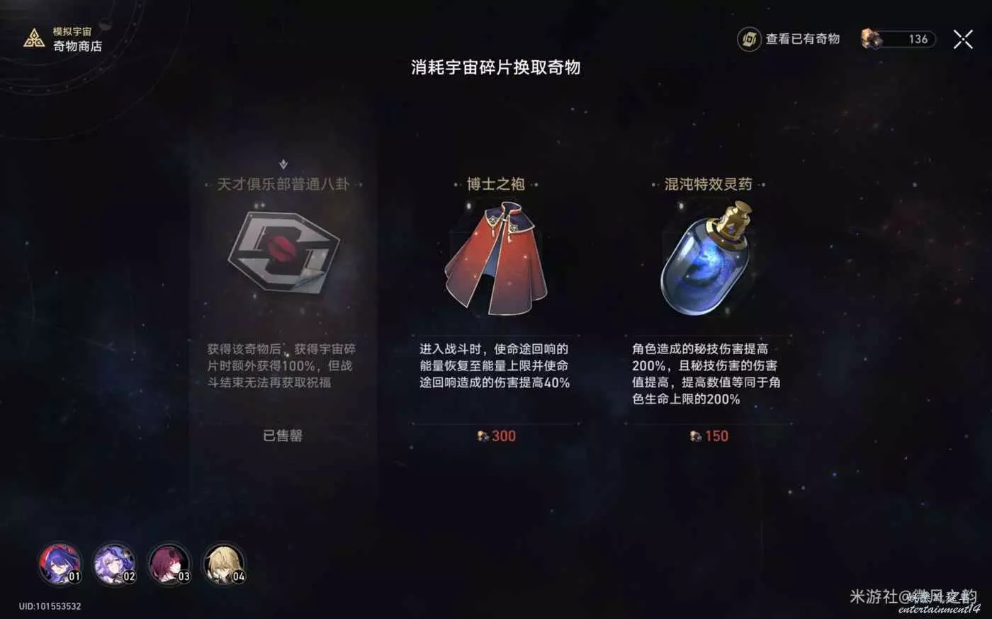 還有一些奇物對我們來說遇到了就是錦上添花的作用,總結下來就是,怎麼可以獲得更多的宇宙碎片就怎麼選,然後盡可能的去交易區消費宇宙碎片。