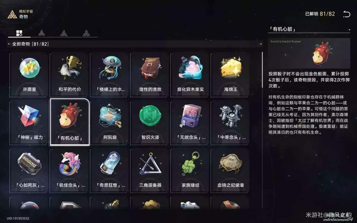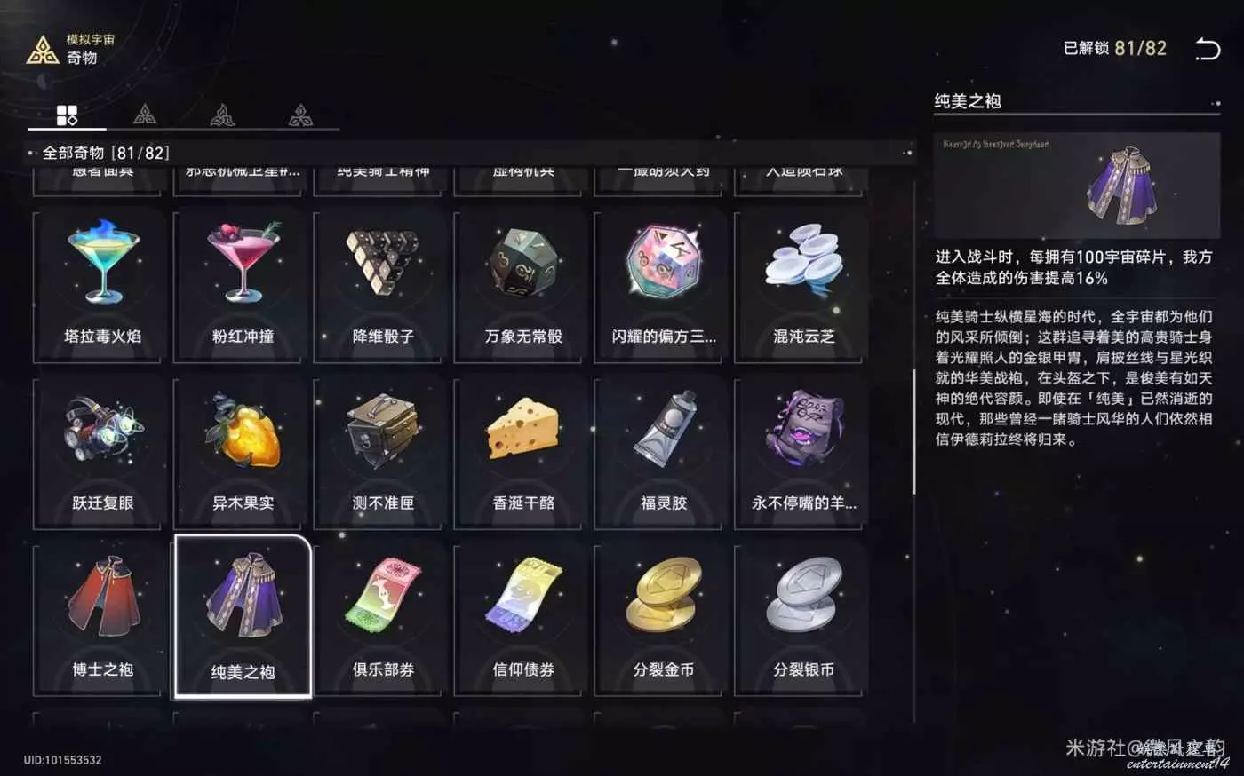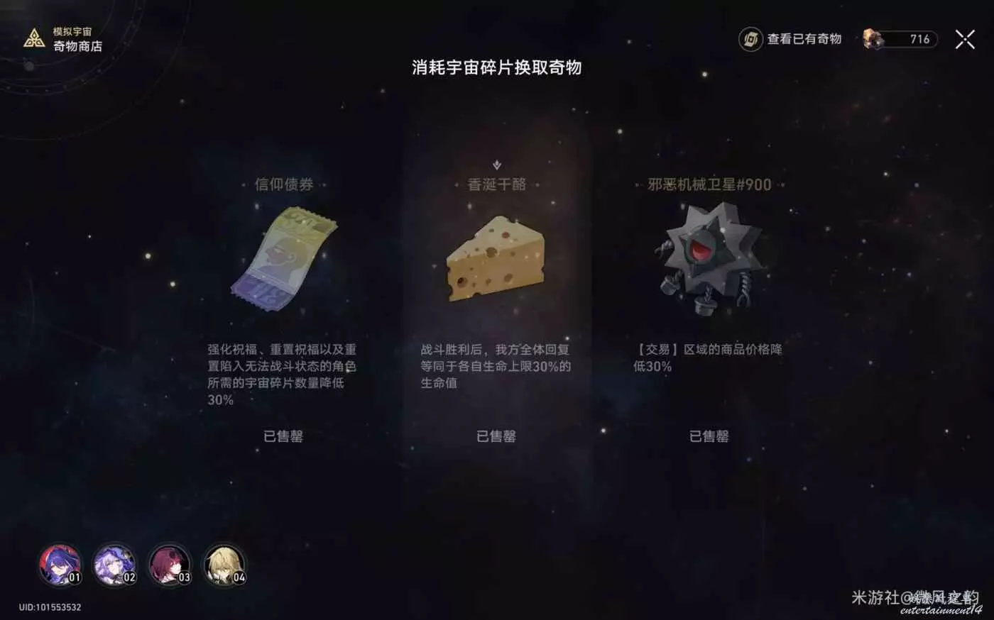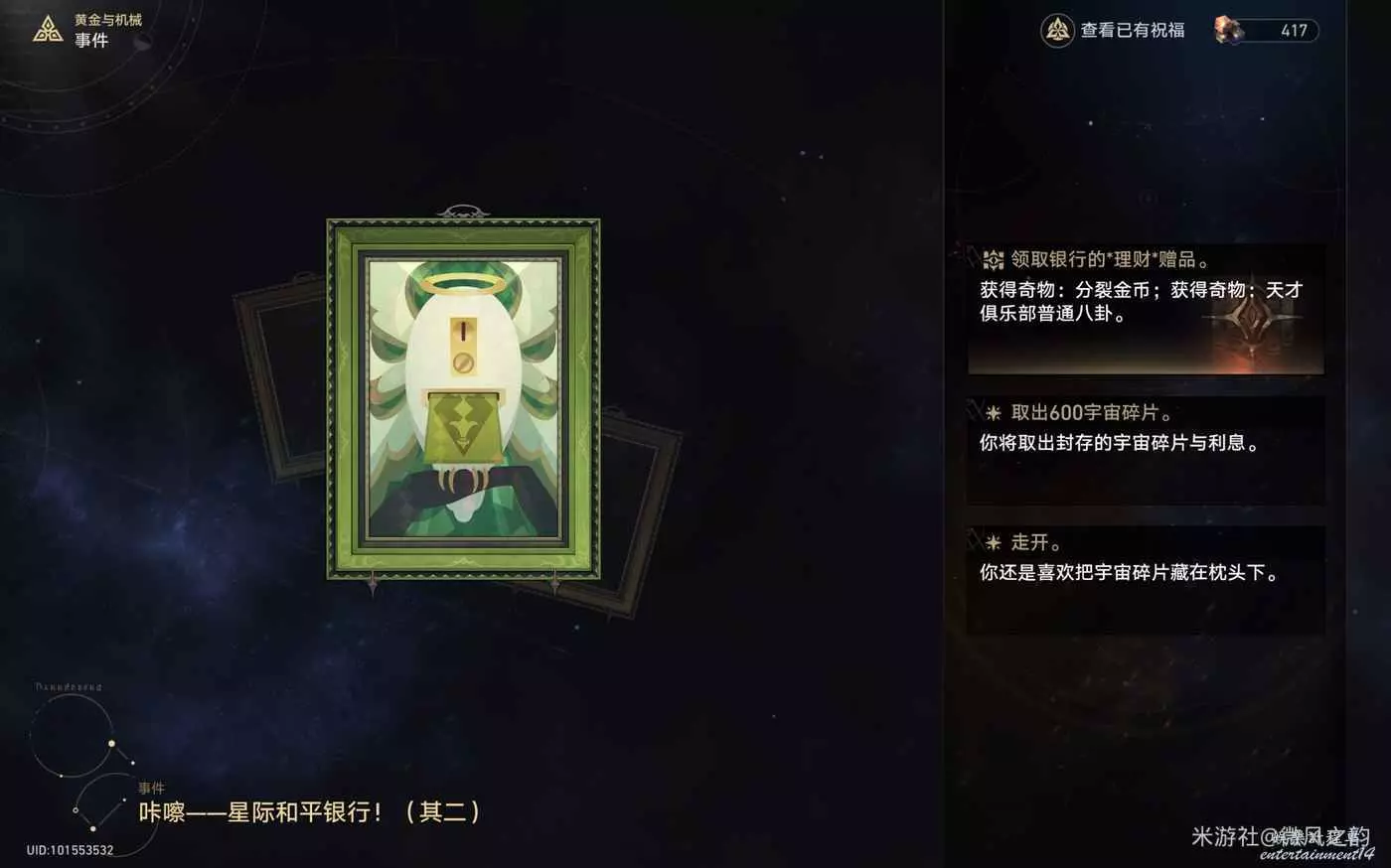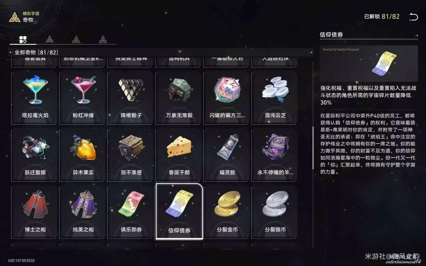 還有一些奇物對我們來說遇到了就是錦上添花的作用,總結下來就是,怎麼可以獲得更多的宇宙碎片就怎麼選,然後盡可能的去交易區消費宇宙碎片。